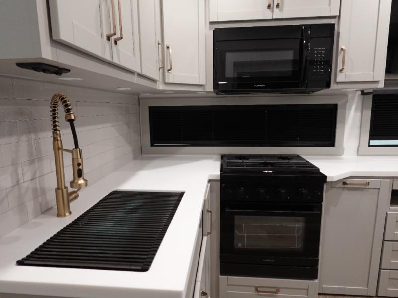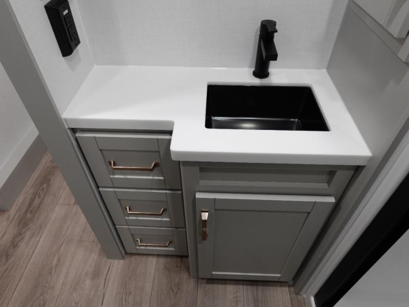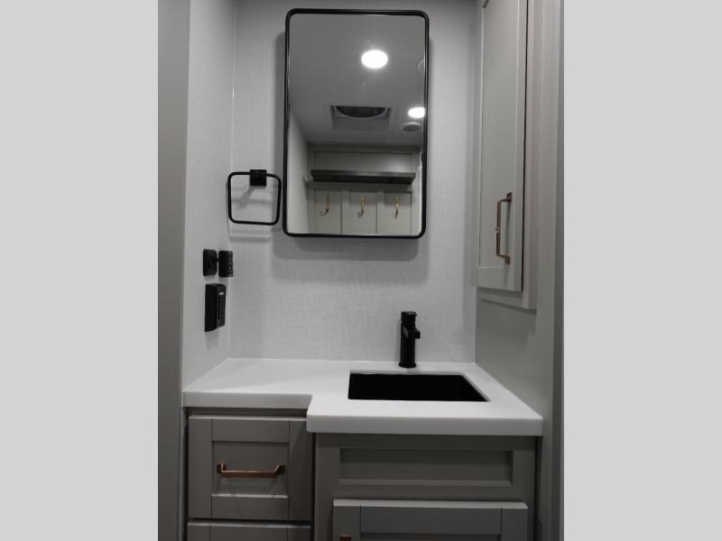 The Brinkley mid-profile Model Z fifth wheels bring you clean lines and an upscale look with plenty of style and exciting new features like the industry first brass plumbing connections. These units also feature an automotive grade front cap, plenty of exterior storage, dual exterior hot and cold showers, and wide stance leveling jacks for easy set up. Residential frameless windows provide a clean look and beautiful views, and ample electrical outlets and USB/USB-C outlets allow all of your electronics and appliances to easily be used and charged.