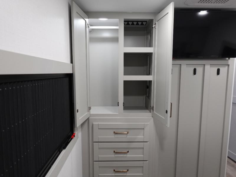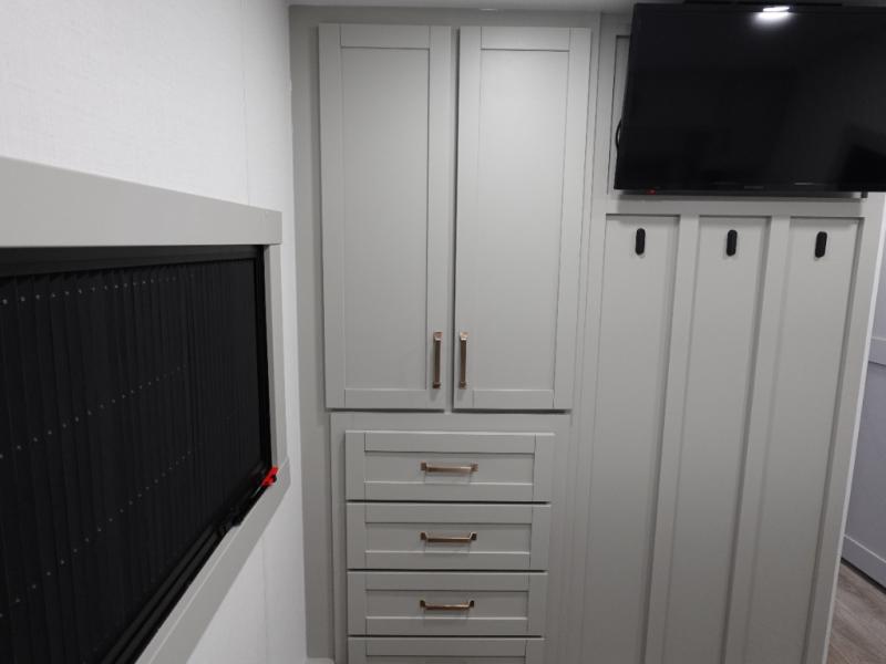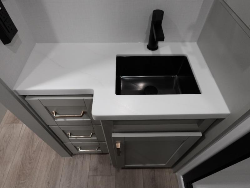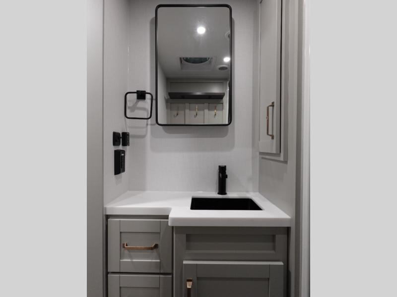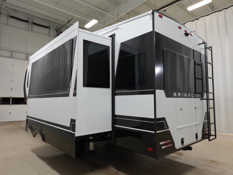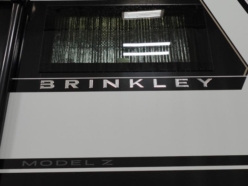 The Brinkley mid-profile Model Z fifth wheels bring you clean lines and an upscale look with plenty of style and exciting new features like the industry first brass plumbing connections. These units also feature an automotive grade front cap, plenty of exterior storage, dual exterior hot and cold showers, and wide stance leveling jacks for easy set up. Residential frameless windows provide a clean look and beautiful views, and ample electrical outlets and USB/USB-C outlets allow all of your electronics and appliances to easily be used and charged.