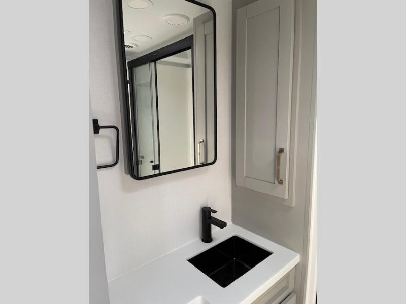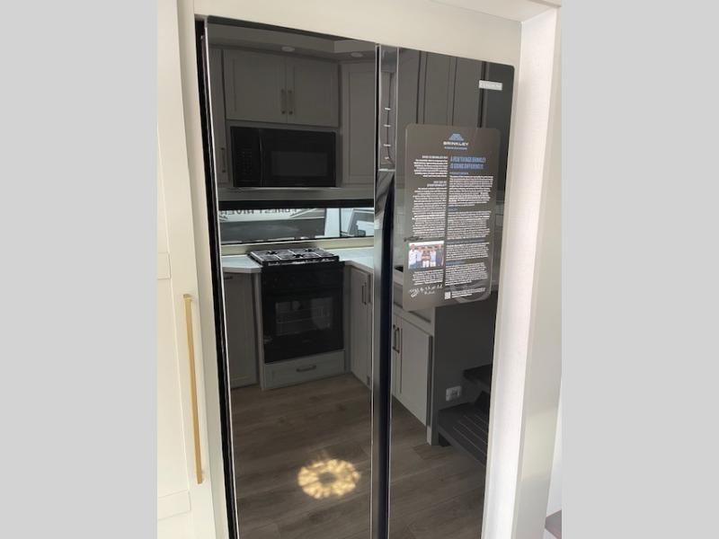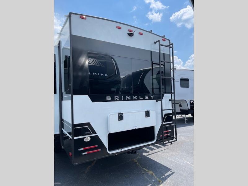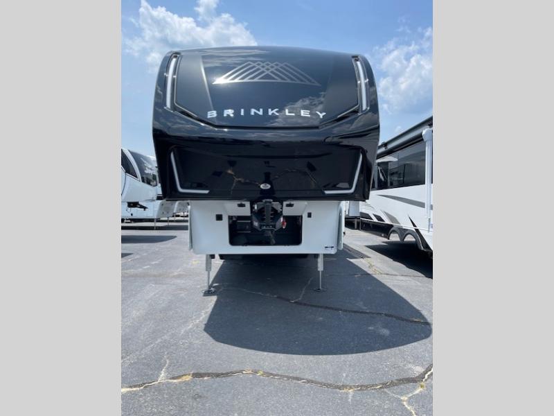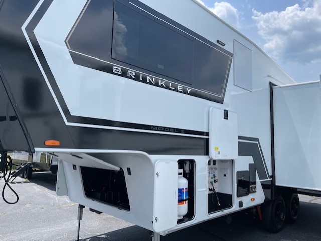 The Brinkley mid-profile Model Z fifth wheels bring you clean lines and an upscale look with plenty of style and exciting new features like the industry first brass plumbing connections. These units also feature an automotive grade front cap, plenty of exterior storage, dual exterior hot and cold showers, and wide stance leveling jacks for easy set up. Residential frameless windows provide a clean look and beautiful views, and ample electrical outlets and USB/USB-C outlets allow all of your electronics and appliances to easily be used and charged.