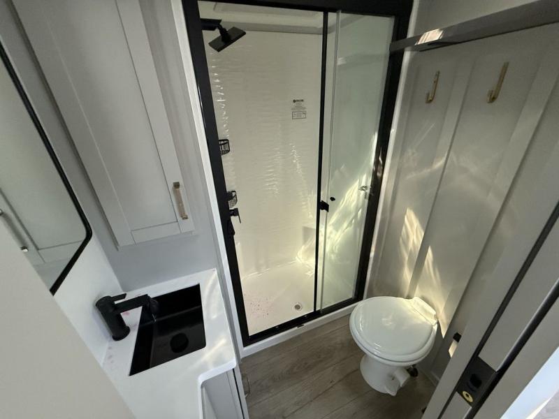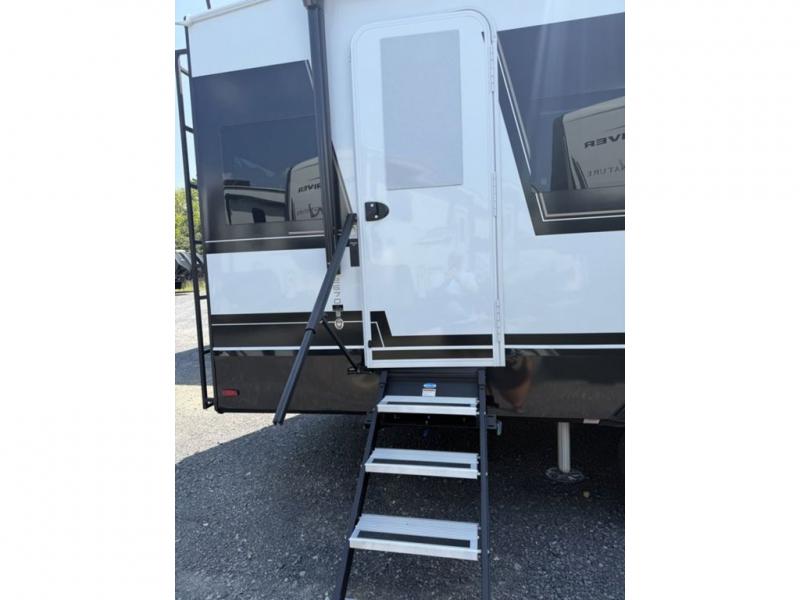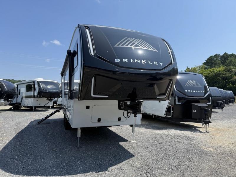 The Brinkley mid-profile Model Z fifth wheels bring you clean lines and an upscale look with plenty of style and exciting new features like the industry first brass plumbing connections. These units also feature an automotive grade front cap, plenty of exterior storage, dual exterior hot and cold showers, and wide stance leveling jacks for easy set up. Residential frameless windows provide a clean look and beautiful views, and ample electrical outlets and USB/USB-C outlets allow all of your electronics and appliances to easily be used and charged.