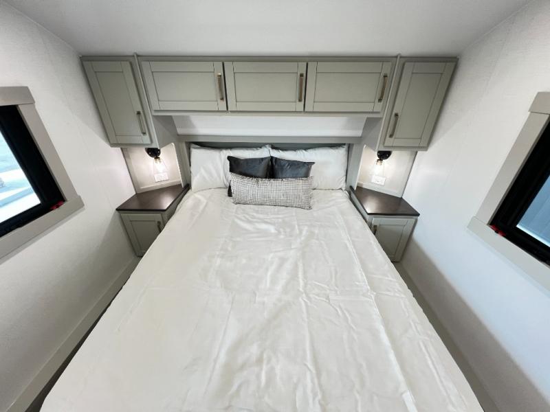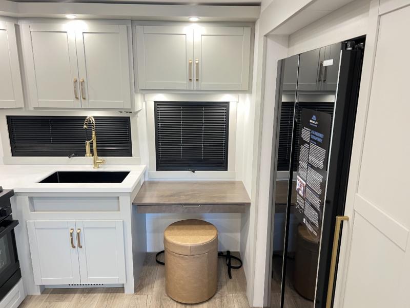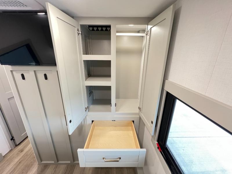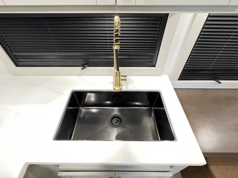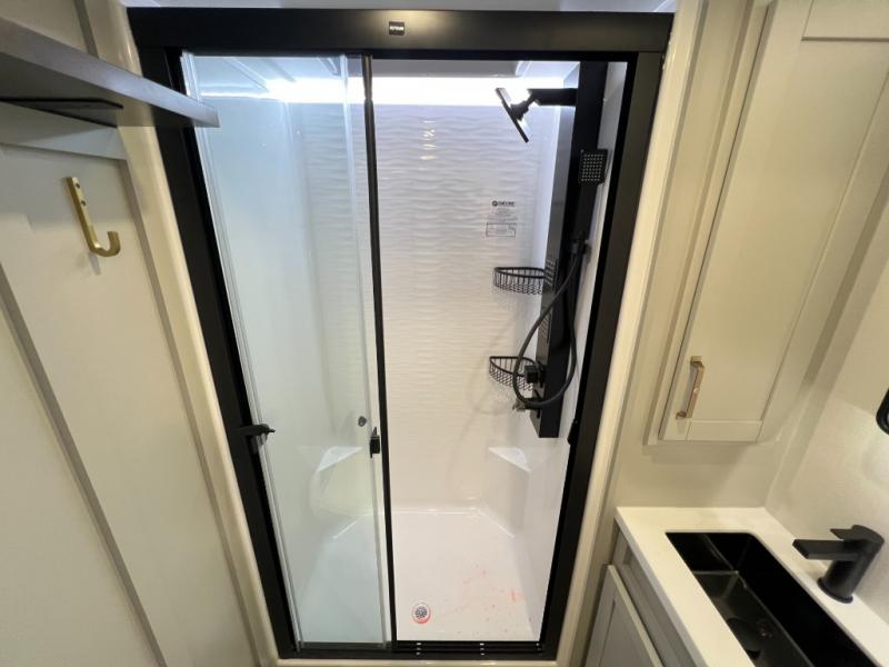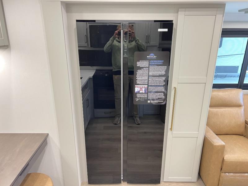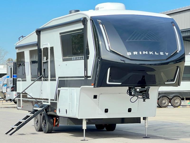 The Brinkley mid-profile Model Z fifth wheels bring you clean lines and an upscale look with plenty of style and exciting new features like the industry first brass plumbing connections. These units also feature an automotive grade front cap, plenty of exterior storage, dual exterior hot and cold showers, and wide stance leveling jacks for easy set up. Residential frameless windows provide a clean look and beautiful views, and ample electrical outlets and USB/USB-C outlets allow all of your electronics and appliances to easily be used and charged.