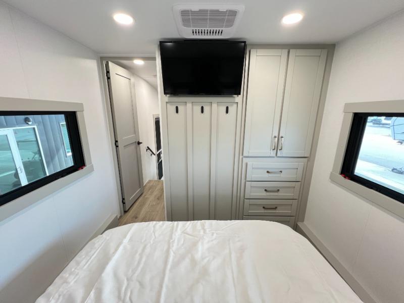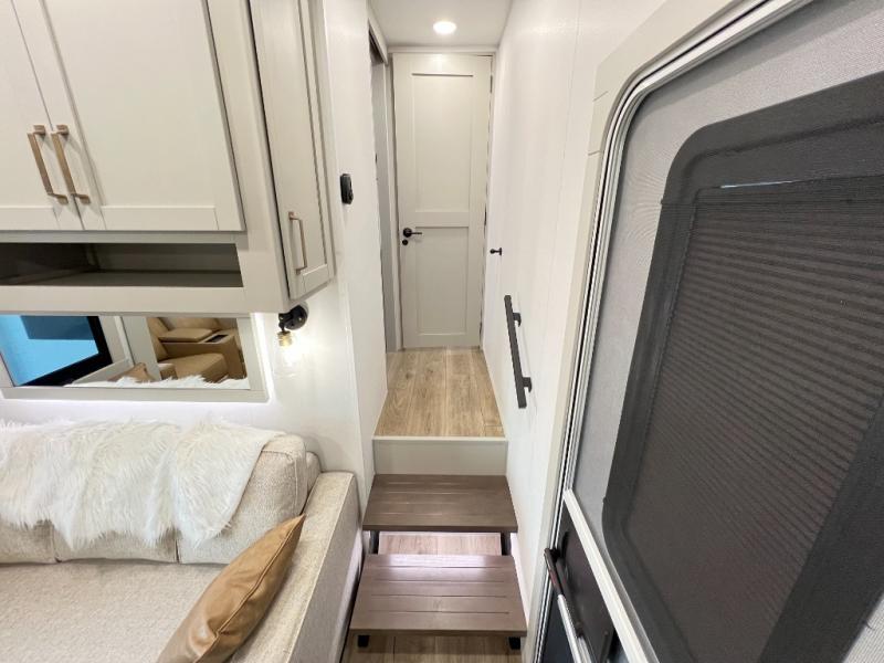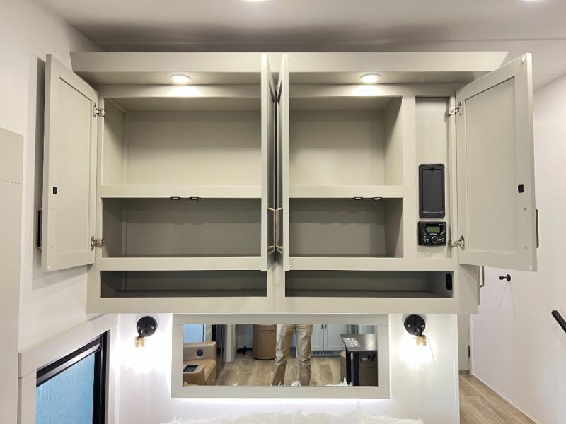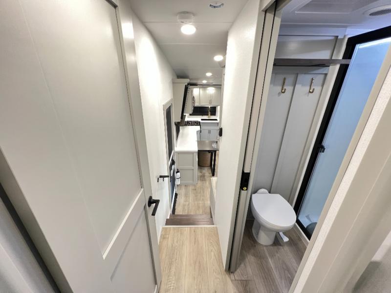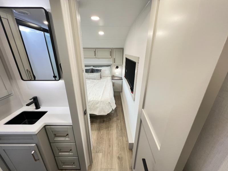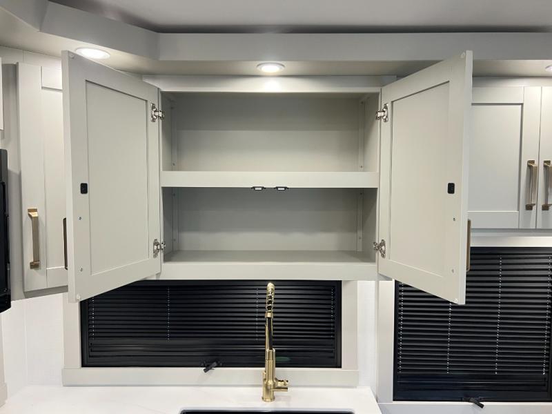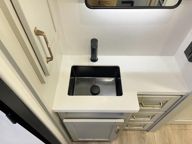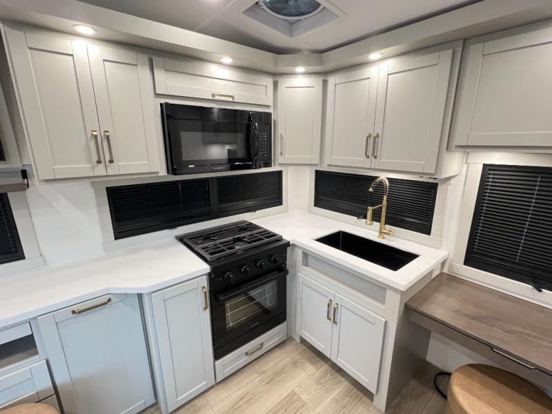 The Brinkley mid-profile Model Z fifth wheels bring you clean lines and an upscale look with plenty of style and exciting new features like the industry first brass plumbing connections. These units also feature an automotive grade front cap, plenty of exterior storage, dual exterior hot and cold showers, and wide stance leveling jacks for easy set up. Residential frameless windows provide a clean look and beautiful views, and ample electrical outlets and USB/USB-C outlets allow all of your electronics and appliances to easily be used and charged.