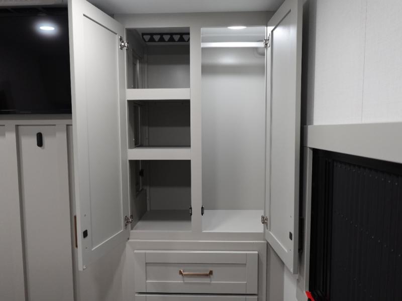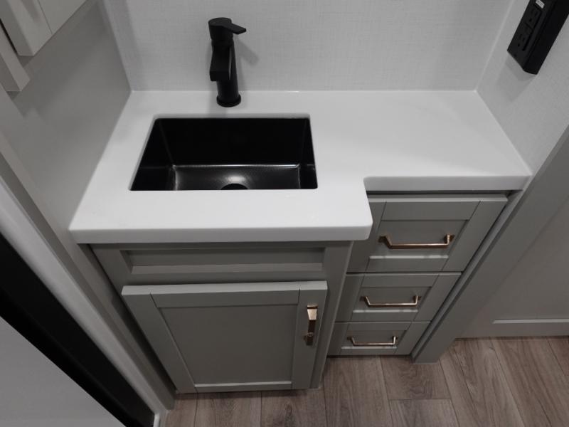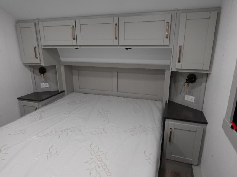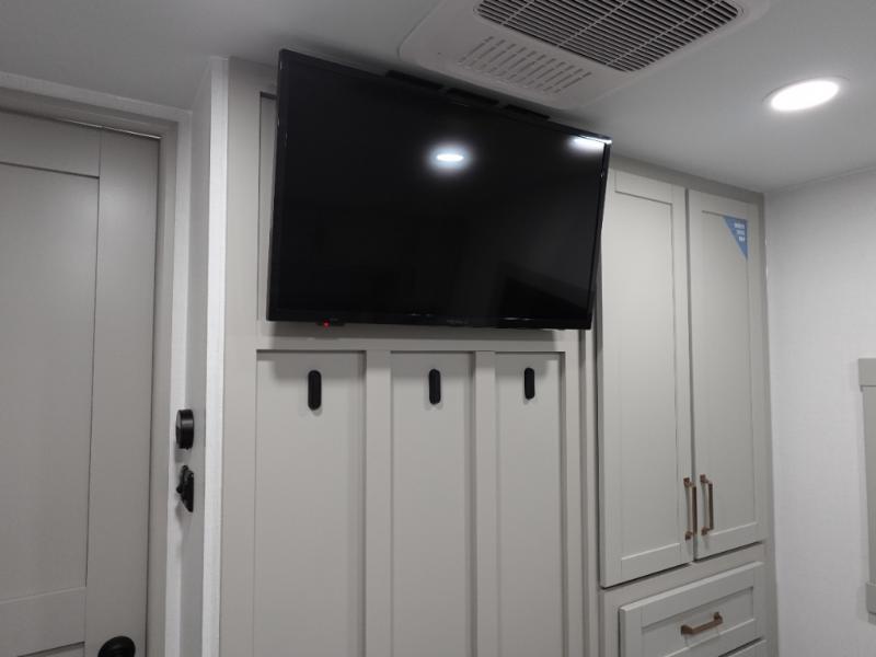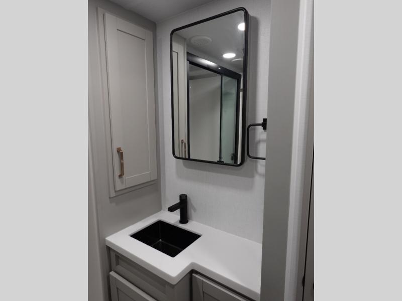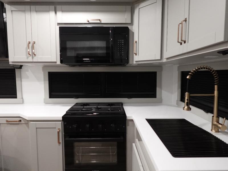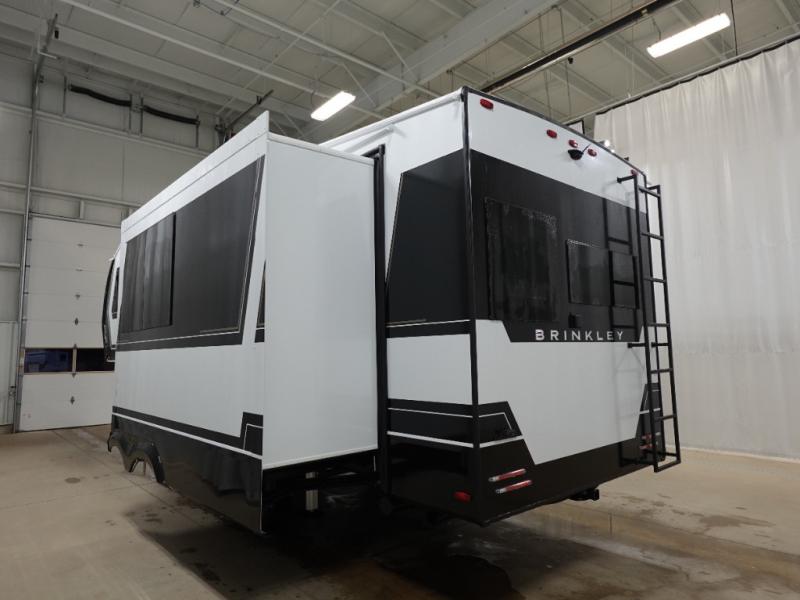 The Brinkley mid-profile Model Z fifth wheels bring you clean lines and an upscale look with plenty of style and exciting new features like the industry first brass plumbing connections. These units also feature an automotive grade front cap, plenty of exterior storage, dual exterior hot and cold showers, and wide stance leveling jacks for easy set up. Residential frameless windows provide a clean look and beautiful views, and ample electrical outlets and USB/USB-C outlets allow all of your electronics and appliances to easily be used and charged.