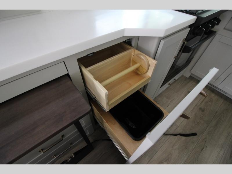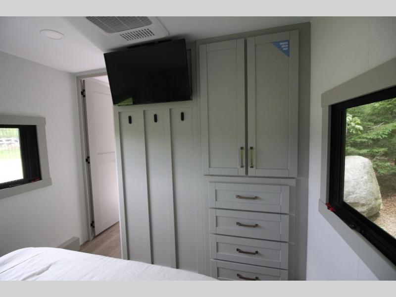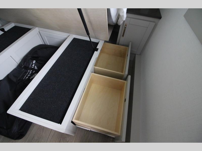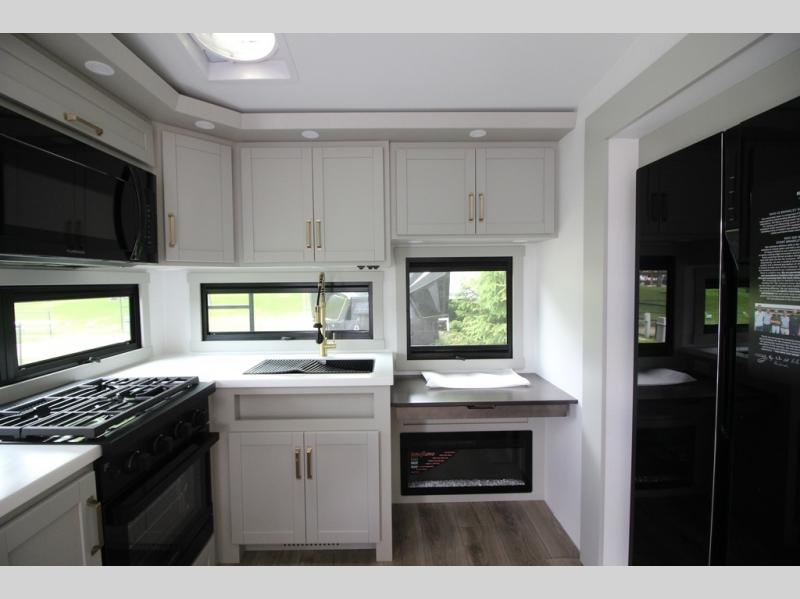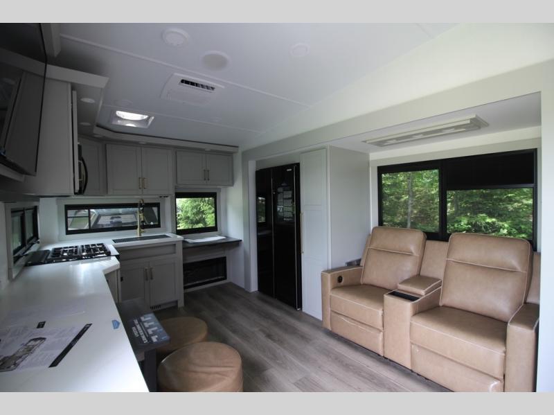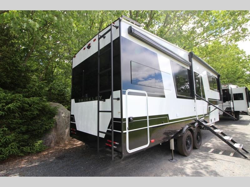 The Brinkley mid-profile Model Z fifth wheels bring you clean lines and an upscale look with plenty of style and exciting new features like the industry first brass plumbing connections. These units also feature an automotive grade front cap, plenty of exterior storage, dual exterior hot and cold showers, and wide stance leveling jacks for easy set up. Residential frameless windows provide a clean look and beautiful views, and ample electrical outlets and USB/USB-C outlets allow all of your electronics and appliances to easily be used and charged.