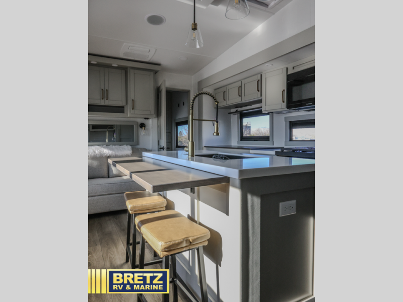 The Brinkley mid-profile Model Z fifth wheels bring you clean lines and an upscale look with plenty of style and exciting new features like the industry first brass plumbing connections. These units also feature an automotive grade front cap, plenty of exterior storage, exterior hot and cold showers, and wide stance leveling jacks for easy set up. Residential frameless windows provide a clean look and beautiful views, and ample electrical outlets and 6 USB/USB-C outlets allow all of your electronics and appliances to easily be used and charged.