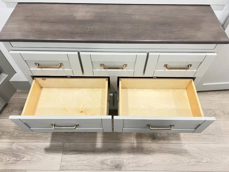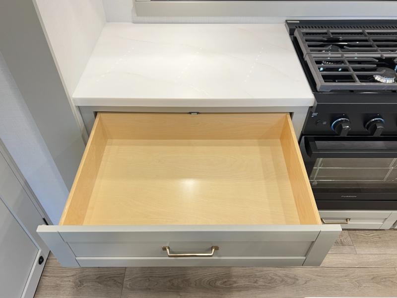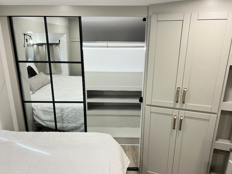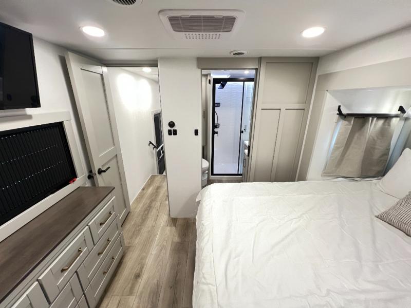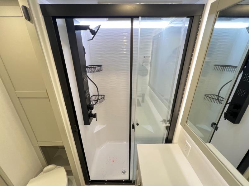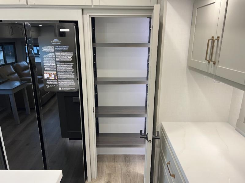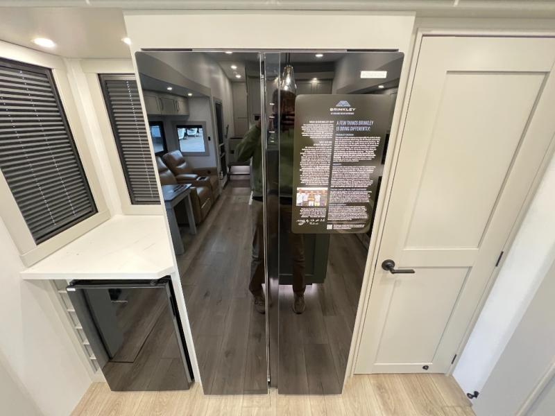 The Brinkley mid-profile Model Z fifth wheels bring you clean lines and an upscale look with plenty of style and exciting new features like the industry first brass plumbing connections. These units also feature an automotive grade front cap, plenty of exterior storage, exterior hot and cold showers, and wide stance leveling jacks for easy set up. Residential frameless windows provide a clean look and beautiful views, and ample electrical outlets and 6 USB/USB-C outlets allow all of your electronics and appliances to easily be used and charged.