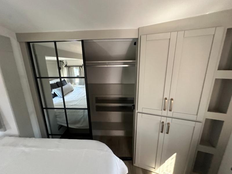 The Brinkley mid-profile Model Z fifth wheels bring you clean lines and an upscale look with plenty of style and exciting new features like the industry first brass plumbing connections. These units also feature an automotive grade front cap, plenty of exterior storage, exterior hot and cold showers, and wide stance leveling jacks for easy set up. Residential frameless windows provide a clean look and beautiful views, and ample electrical outlets and 6 USB/USB-C outlets allow all of your electronics and appliances to easily be used and charged.