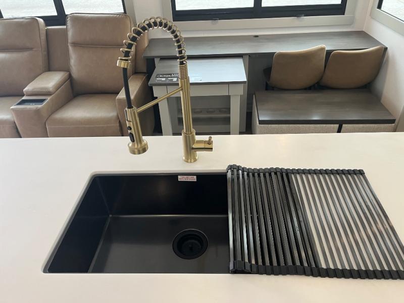 The Brinkley mid-profile Model Z fifth wheels bring you clean lines and an upscale look with plenty of style and exciting new features like the industry first brass plumbing connections. These units also feature an automotive grade front cap, plenty of exterior storage, exterior hot and cold showers, and wide stance leveling jacks for easy set up. Residential frameless windows provide a clean look and beautiful views, and ample electrical outlets and 6 USB/USB-C outlets allow all of your electronics and appliances to easily be used and charged.