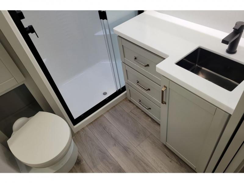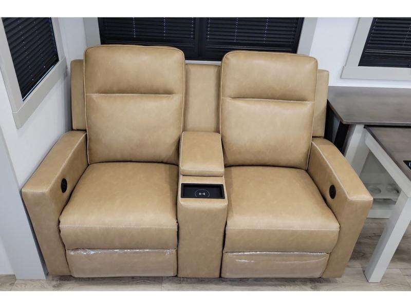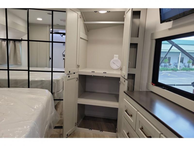 The Brinkley mid-profile Model Z fifth wheels bring you clean lines and an upscale look with plenty of style and exciting new features like the industry first brass plumbing connections. These units also feature an automotive grade front cap, plenty of exterior storage, exterior hot and cold showers, and wide stance leveling jacks for easy set up. Residential frameless windows provide a clean look and beautiful views, and ample electrical outlets and 6 USB/USB-C outlets allow all of your electronics and appliances to easily be used and charged.