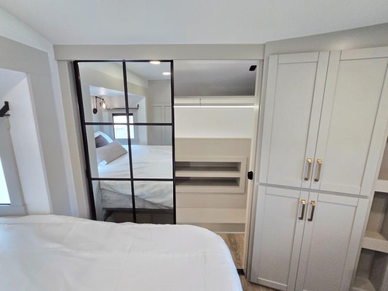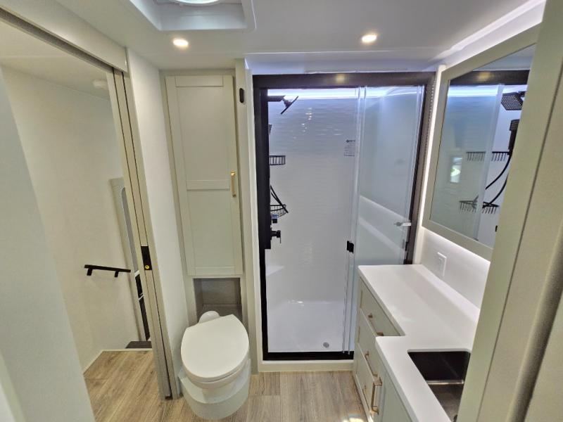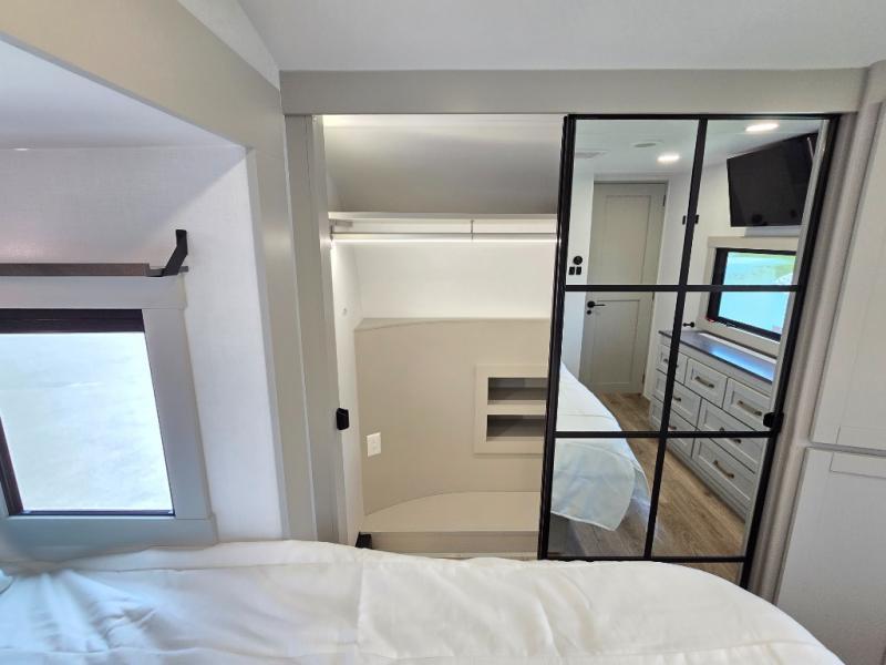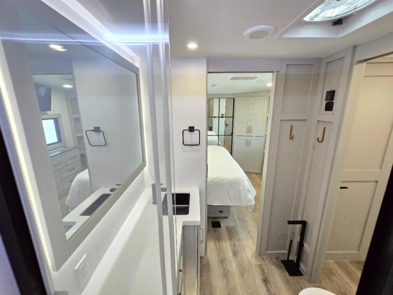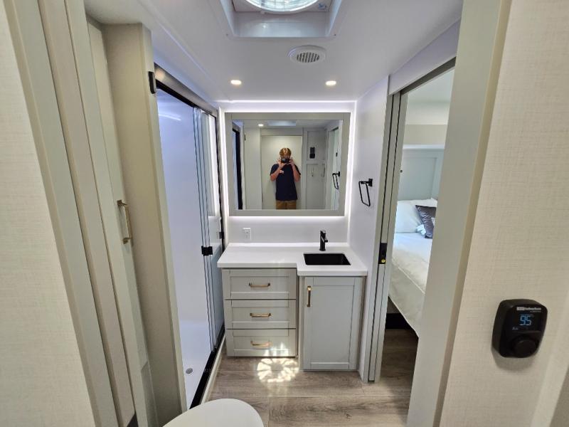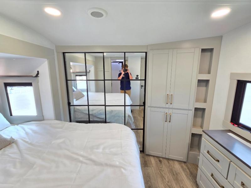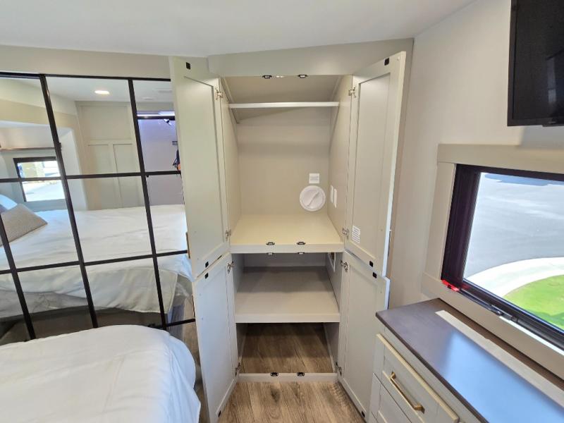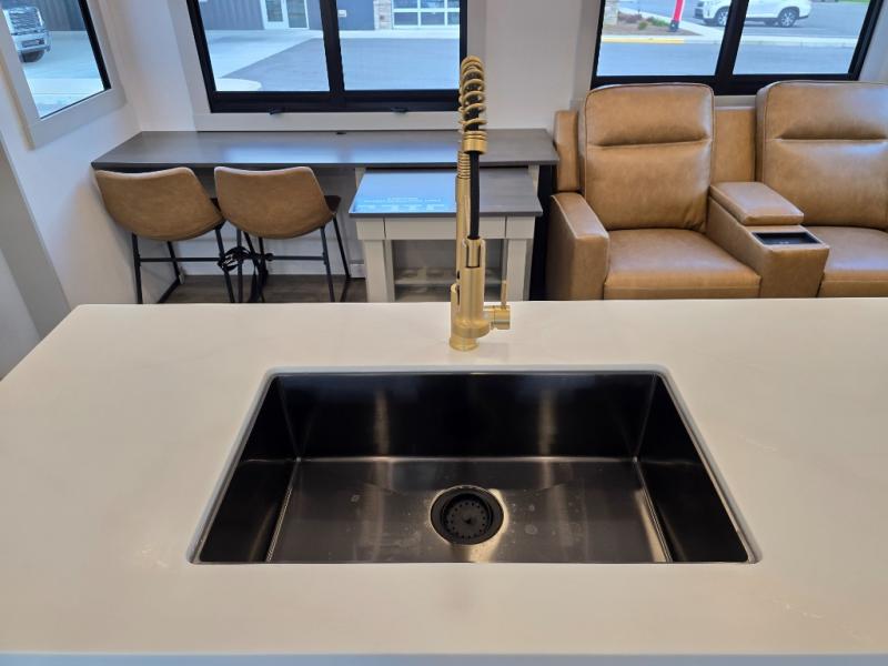 The Brinkley mid-profile Model Z fifth wheels bring you clean lines and an upscale look with plenty of style and exciting new features like the industry first brass plumbing connections. These units also feature an automotive grade front cap, plenty of exterior storage, exterior hot and cold showers, and wide stance leveling jacks for easy set up. Residential frameless windows provide a clean look and beautiful views, and ample electrical outlets and 6 USB/USB-C outlets allow all of your electronics and appliances to easily be used and charged.