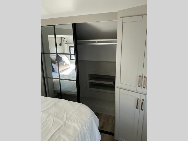 The Brinkley mid-profile Model Z fifth wheels bring you clean lines and an upscale look with plenty of style and exciting new features like the industry first brass plumbing connections. These units also feature an automotive grade front cap, plenty of exterior storage, exterior hot and cold showers, and wide stance leveling jacks for easy set up. Residential frameless windows provide a clean look and beautiful views, and ample electrical outlets and 6 USB/USB-C outlets allow all of your electronics and appliances to easily be used and charged.