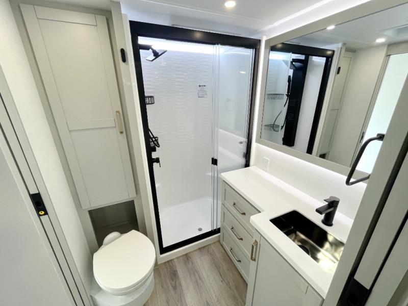 The Brinkley mid-profile Model Z fifth wheels bring you clean lines and an upscale look with plenty of style and exciting new features like the industry first brass plumbing connections. These units also feature an automotive grade front cap, plenty of exterior storage, exterior hot and cold showers, and wide stance leveling jacks for easy set up. Residential frameless windows provide a clean look and beautiful views, and ample electrical outlets and 6 USB/USB-C outlets allow all of your electronics and appliances to easily be used and charged.