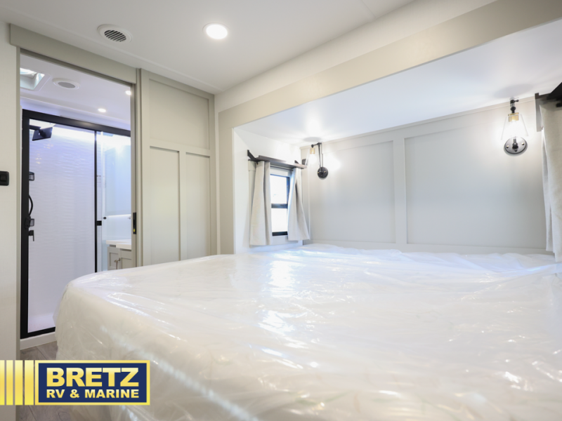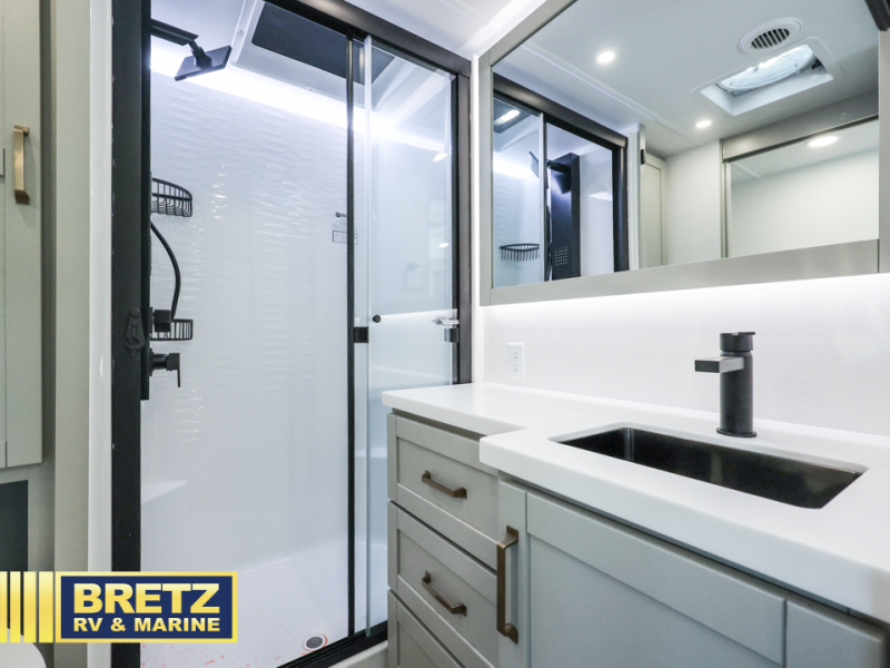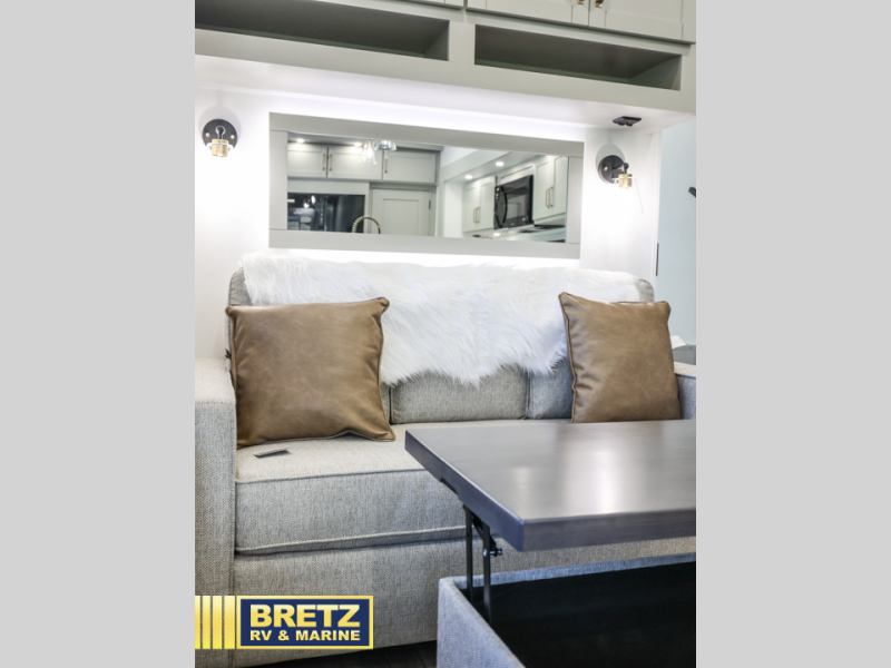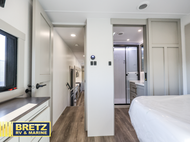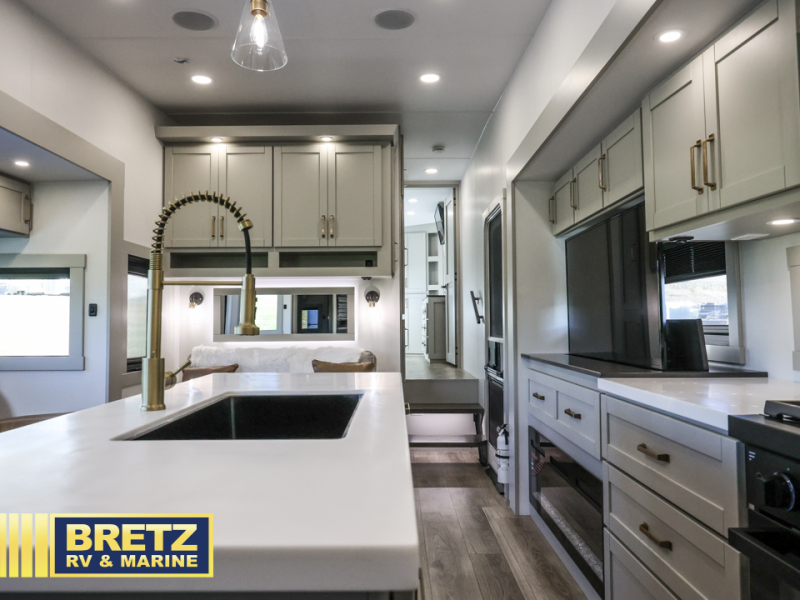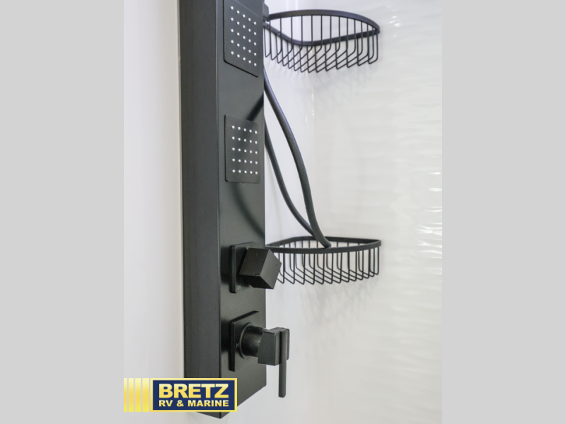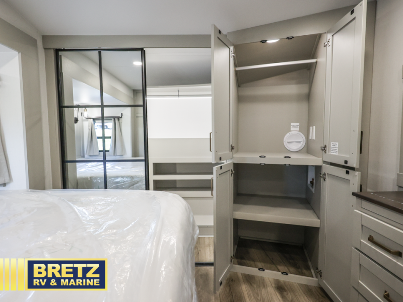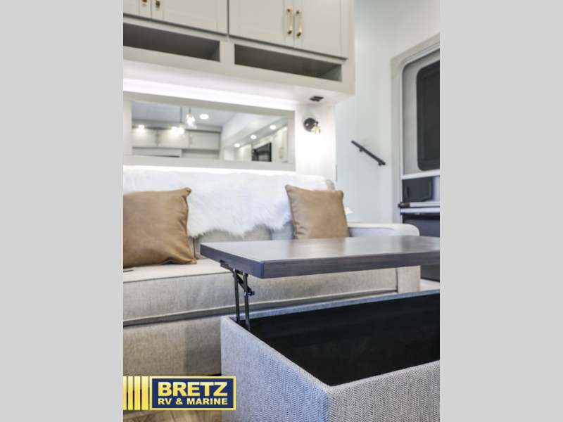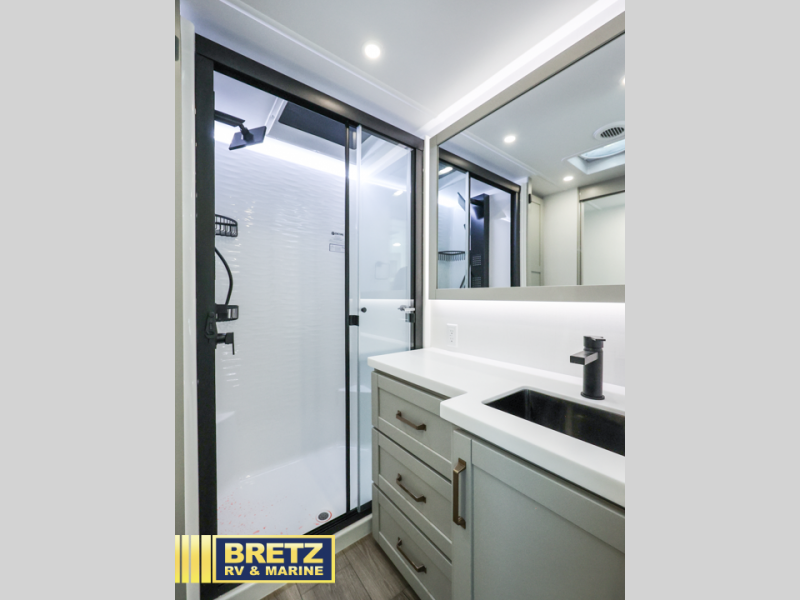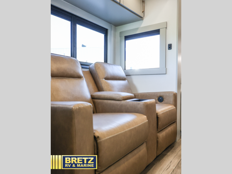 The Brinkley mid-profile Model Z fifth wheels bring you clean lines and an upscale look with plenty of style and exciting new features like the industry first brass plumbing connections. These units also feature an automotive grade front cap, plenty of exterior storage, exterior hot and cold showers, and wide stance leveling jacks for easy set up. Residential frameless windows provide a clean look and beautiful views, and ample electrical outlets and 6 USB/USB-C outlets allow all of your electronics and appliances to easily be used and charged.
