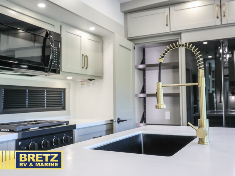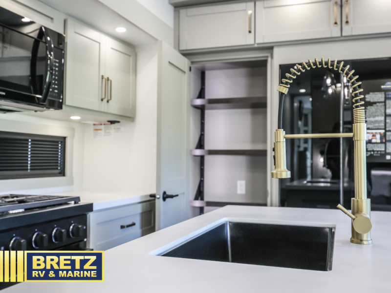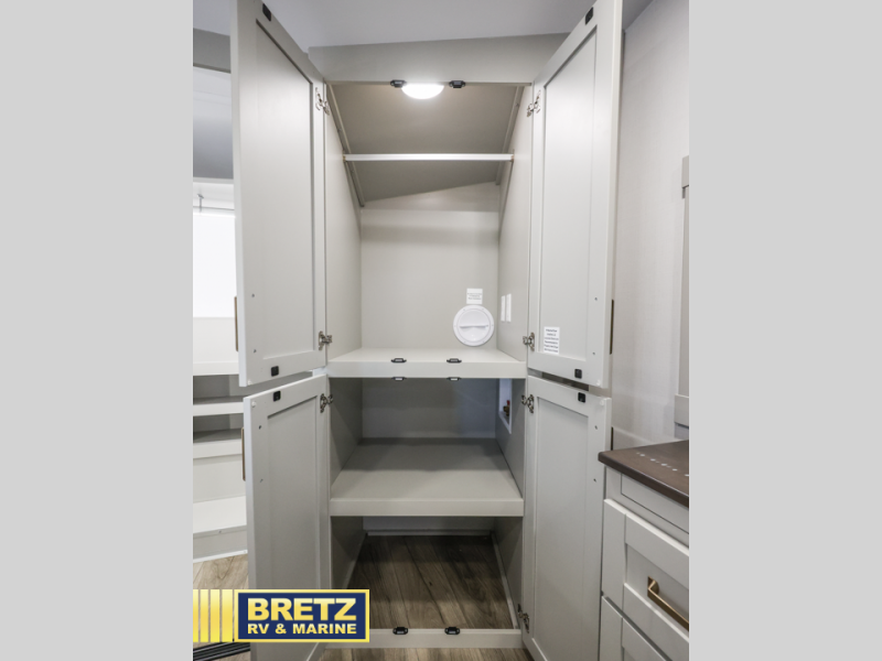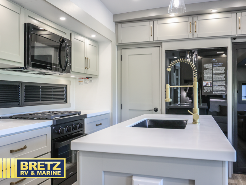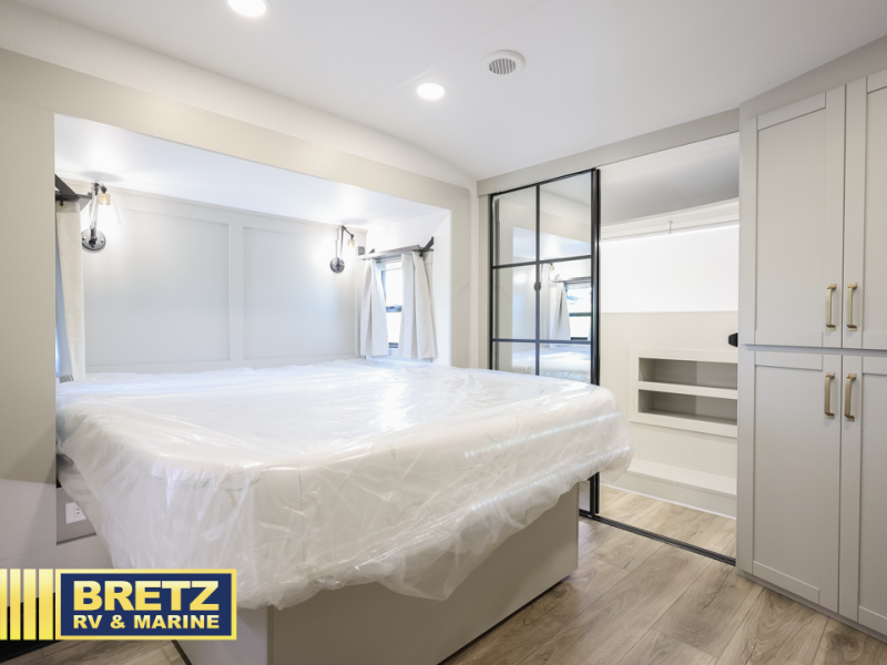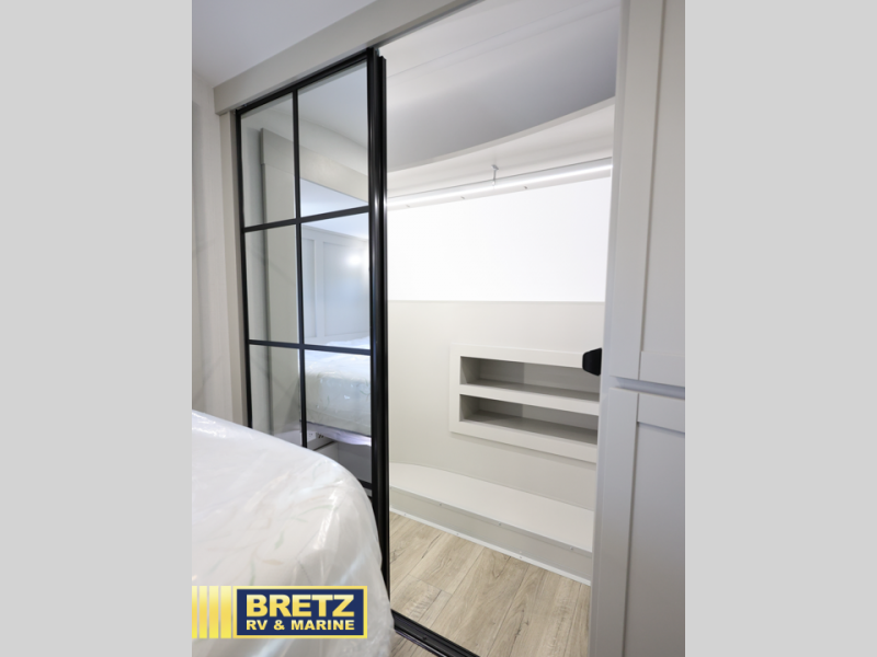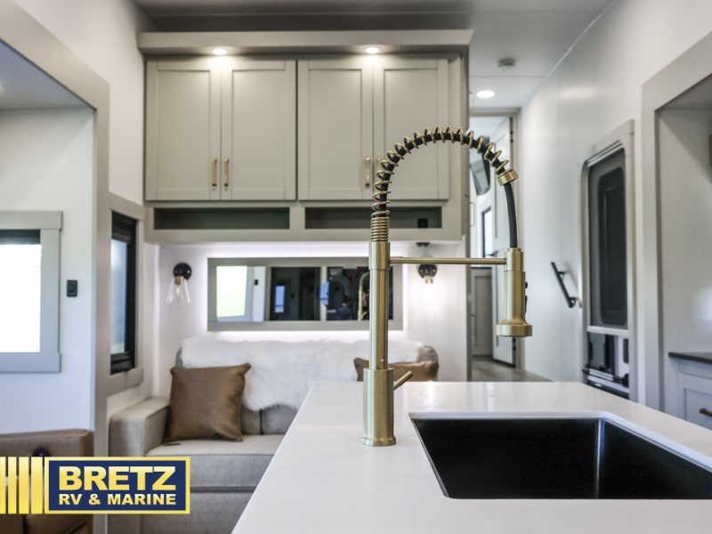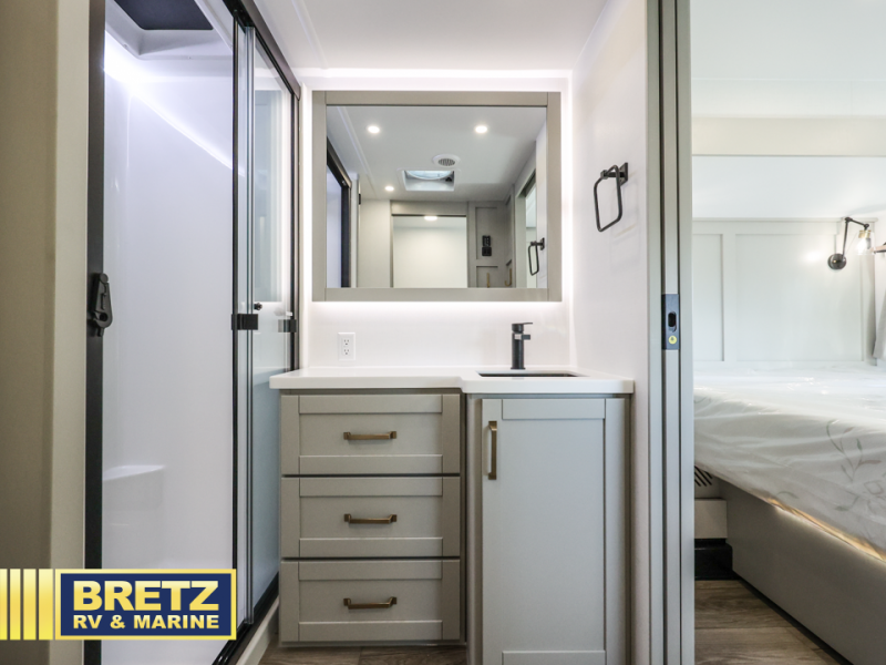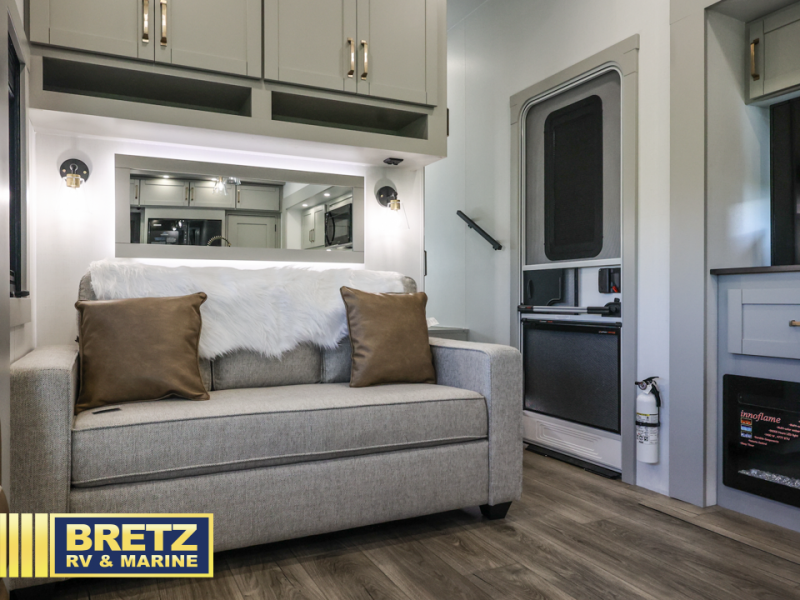The Brinkley mid-profile Model Z fifth wheels bring you clean lines and an upscale look with plenty of style and exciting new features like the industry first brass plumbing connections. These units also feature an automotive grade front cap, plenty of exterior storage, exterior hot and cold showers, and wide stance leveling jacks for easy set up. Residential frameless windows provide a clean look and beautiful views, and ample electrical outlets and 6 USB/USB-C outlets allow all of your electronics and appliances to easily be used and charged.
