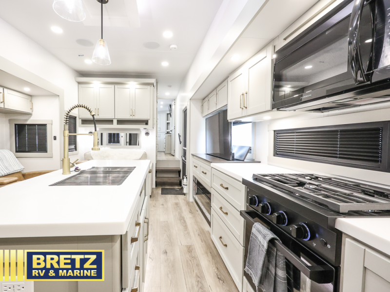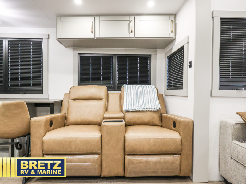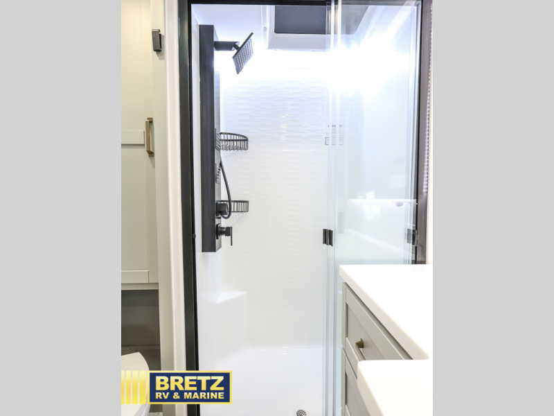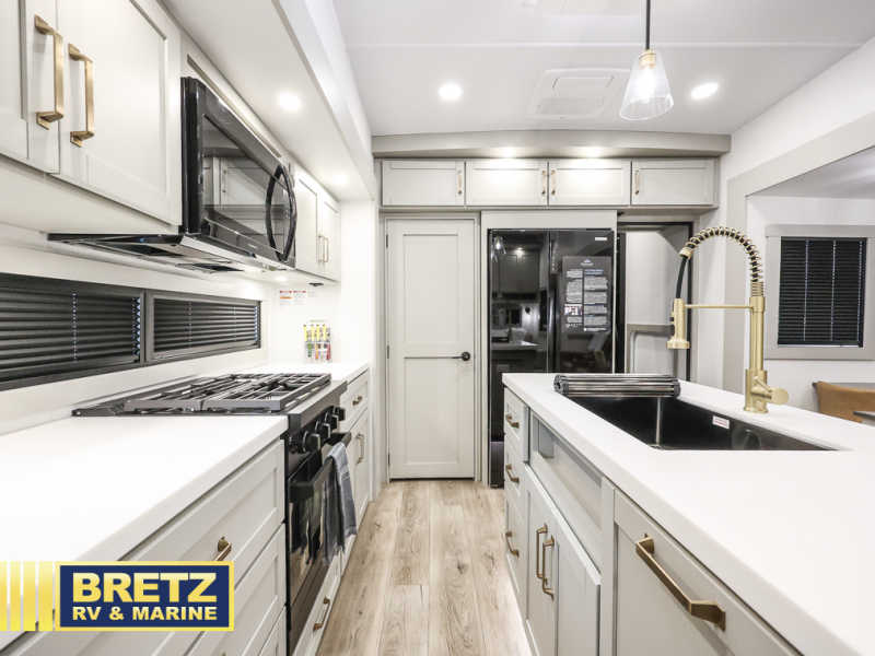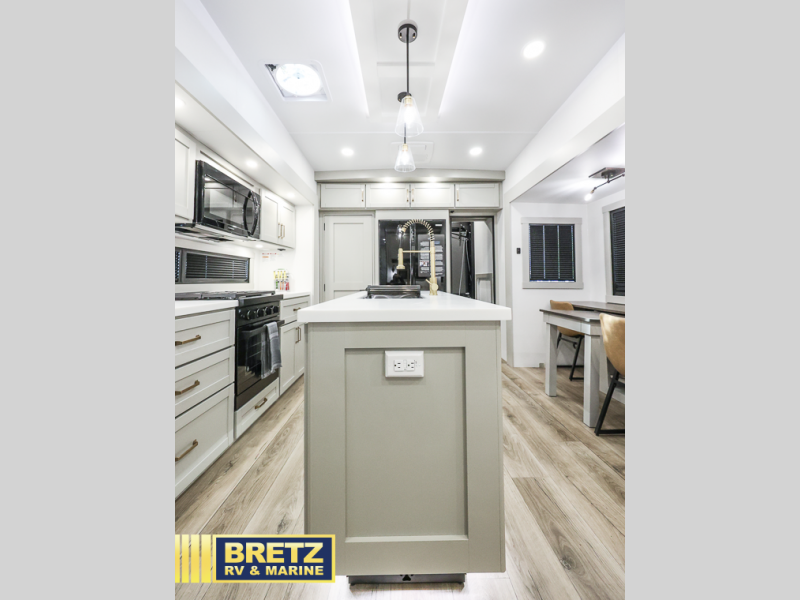 The Brinkley mid-profile Model Z fifth wheels bring you clean lines and an upscale look with plenty of style and exciting new features like the industry first brass plumbing connections. These units also feature an automotive grade front cap, plenty of exterior storage, exterior hot and cold showers, and wide stance leveling jacks for easy set up. Residential frameless windows provide a clean look and beautiful views, and ample electrical outlets and 6 USB/USB-C outlets allow all of your electronics and appliances to easily be used and charged.