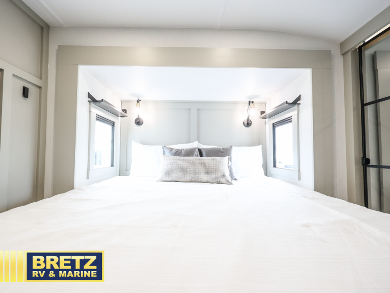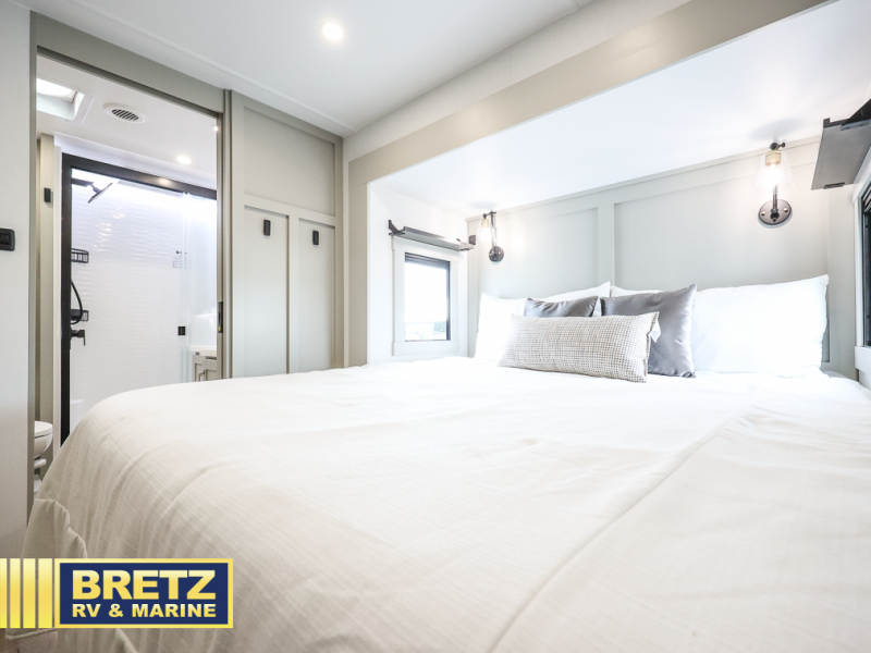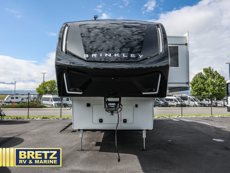 The Brinkley mid-profile Model Z fifth wheels bring you clean lines and an upscale look with plenty of style and exciting new features like the industry first brass plumbing connections. These units also feature an automotive grade front cap, plenty of exterior storage, exterior hot and cold showers, and wide stance leveling jacks for easy set up. Residential frameless windows provide a clean look and beautiful views, and ample electrical outlets and 6 USB/USB-C outlets allow all of your electronics and appliances to easily be used and charged.
