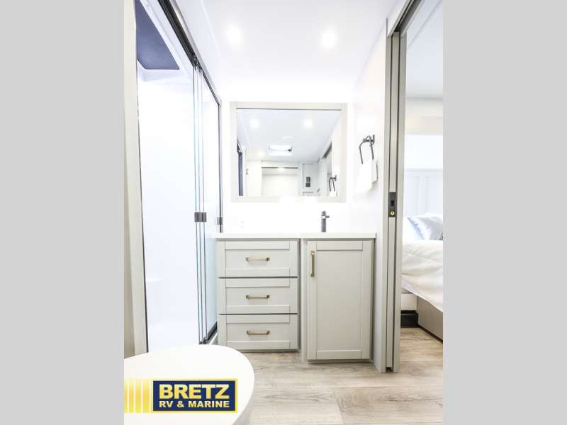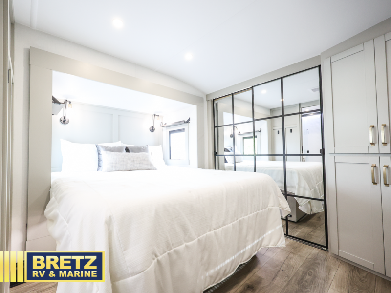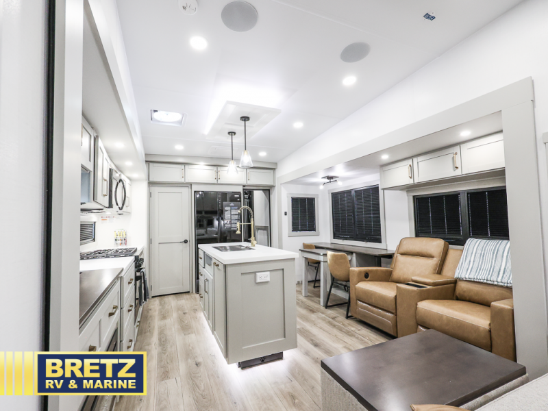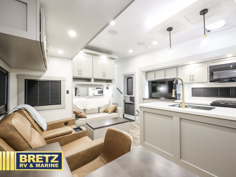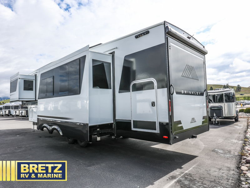 The Brinkley mid-profile Model Z fifth wheels bring you clean lines and an upscale look with plenty of style and exciting new features like the industry first brass plumbing connections. These units also feature an automotive grade front cap, plenty of exterior storage, exterior hot and cold showers, and wide stance leveling jacks for easy set up. Residential frameless windows provide a clean look and beautiful views, and ample electrical outlets and 6 USB/USB-C outlets allow all of your electronics and appliances to easily be used and charged.
