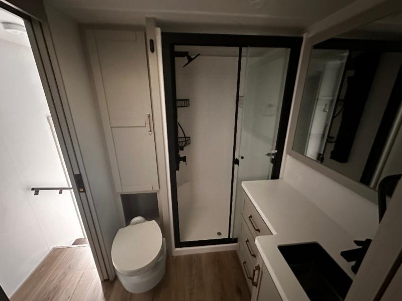 The Brinkley mid-profile Model Z fifth wheels bring you clean lines and an upscale look with plenty of style and exciting new features like the industry first brass plumbing connections. These units also feature an automotive grade front cap, plenty of exterior storage, exterior hot and cold showers, and wide stance leveling jacks for easy set up. Residential frameless windows provide a clean look and beautiful views, and ample electrical outlets and 6 USB/USB-C outlets allow all of your electronics and appliances to easily be used and charged.