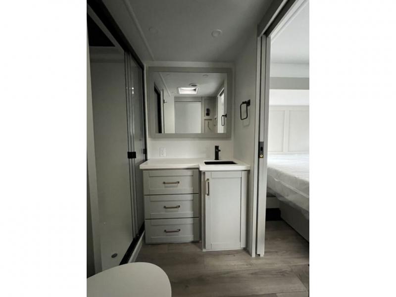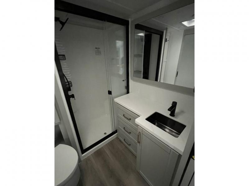 The Brinkley mid-profile Model Z fifth wheels bring you clean lines and an upscale look with plenty of style and exciting new features like the industry first brass plumbing connections. These units also feature an automotive grade front cap, plenty of exterior storage, exterior hot and cold showers, and wide stance leveling jacks for easy set up. Residential frameless windows provide a clean look and beautiful views, and ample electrical outlets and 6 USB/USB-C outlets allow all of your electronics and appliances to easily be used and charged.
