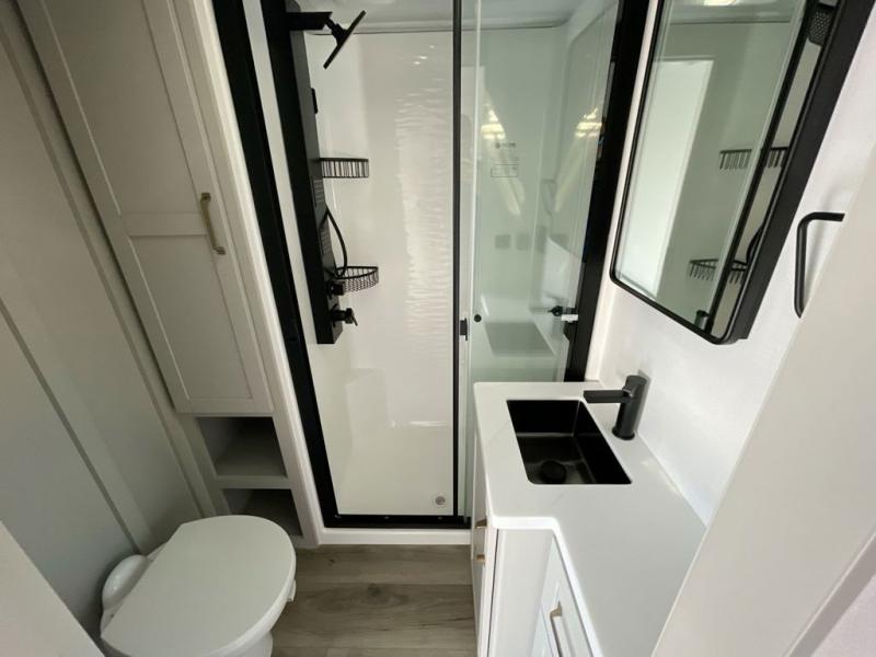The Brinkley mid-profile Model Z fifth wheels bring you clean lines and an upscale look with plenty of style and exciting new features like the industry first brass plumbing connections. These units also feature an automotive grade front cap, plenty of exterior storage, dual exterior hot and cold showers, and wide stance leveling jacks for easy set up. Residential frameless windows provide a clean look and beautiful views, and ample electrical outlets and 6 USB/USB-C outlets allow all of your electronics and appliances to easily be used and charged.