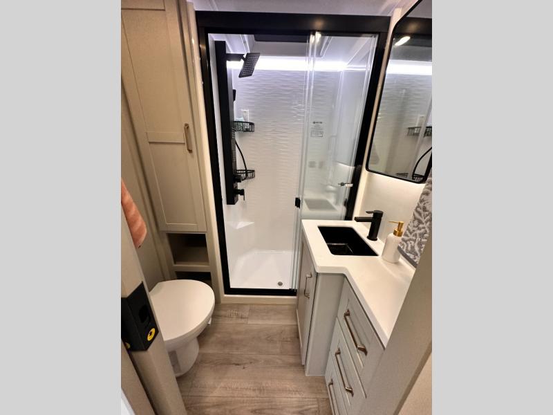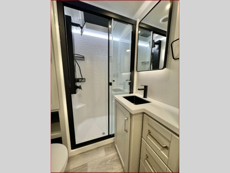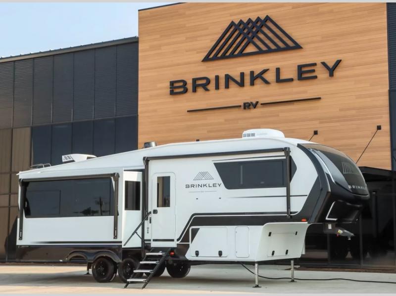The Brinkley mid-profile Model Z fifth wheels bring you clean lines and an upscale look with plenty of style and exciting new features like the industry first brass plumbing connections. These units also feature an automotive grade front cap, plenty of exterior storage, dual exterior hot and cold showers, and wide stance leveling jacks for easy set up. Residential frameless windows provide a clean look and beautiful views, and ample electrical outlets and 6 USB/USB-C outlets allow all of your electronics and appliances to easily be used and charged.