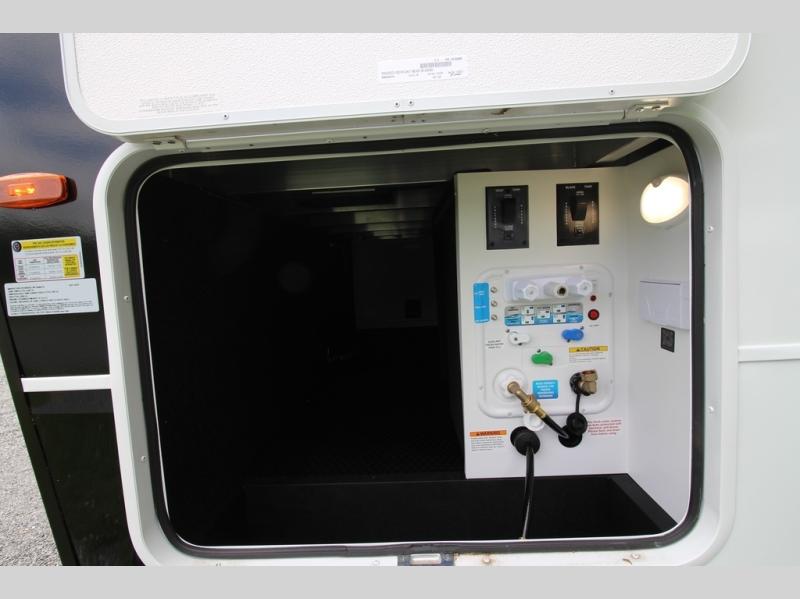 With any Model Z Air travel trailer by Brinkley, you will enjoy premium features at every turn. The industry-first low maintenance roof is sure to be appreciated, plus there are industry-first brass plumbing connections for excellent resistance to corrosion. The drop-frame chassis with ample exterior storage will allow you to bring along camp gear galore, plus there are motion lighting and power outlets for added convenience! You'll also find two hot/cold showers outdoors, along with a 370-watt solar panel, a custom LP box with locked battery storage, and a premium utility center with a retractable 65' water hose to wash off mud from the lake. The interior is just as accommodating with its solid surface countertops, Brinkley CraftSense wood trim construction, integrated window screens and insulated blackout blinds, and the list of luxury features goes on!