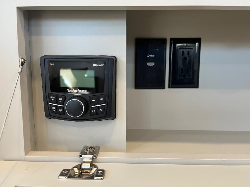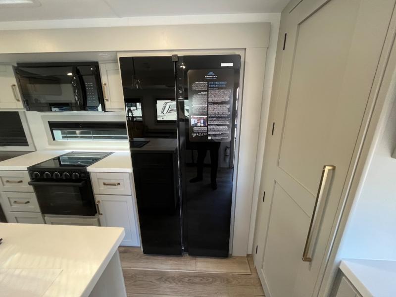 With any Model Z Air travel trailer by Brinkley, you will enjoy premium features at every turn. The industry-first low maintenance roof is sure to be appreciated, plus there are industry-first brass plumbing connections for excellent resistance to corrosion. The drop-frame chassis with over 100 cu. ft. of exterior storage will allow you to bring along camp gear galore, plus there are motion lighting and power outlets for added convenience! You'll also find two hot/cold showers outdoors, along with a 370-watt solar panel, a custom LP box with locked battery storage, and a premium utility center with a retractable 65' water hose to wash off mud from the lake. The interior is just as accommodating with its solid surface countertops, Brinkley CraftSense wood trim construction, integrated window screens and insulated blackout blinds, and the list of luxury features goes on!