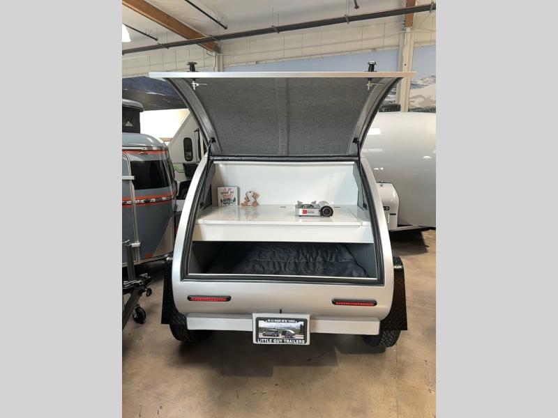 Hitch up and head out to your favorite camping spot, beach, or sporting event tailgate! With this CampKat teardrop in tow, two can easily enjoy a dry place to sleep and have an easy space to prepare meals or snacks on the go. The LED lighting inside, as well as in the rear hatch area, makes it easy to prepare food and get settled in even after dark. You will appreciate the comfy mattress, storage cabinets both inside and in the rear hatch compartment for your things, and there is also a 12 volt deep cycle battery if you need access to power.