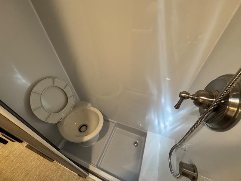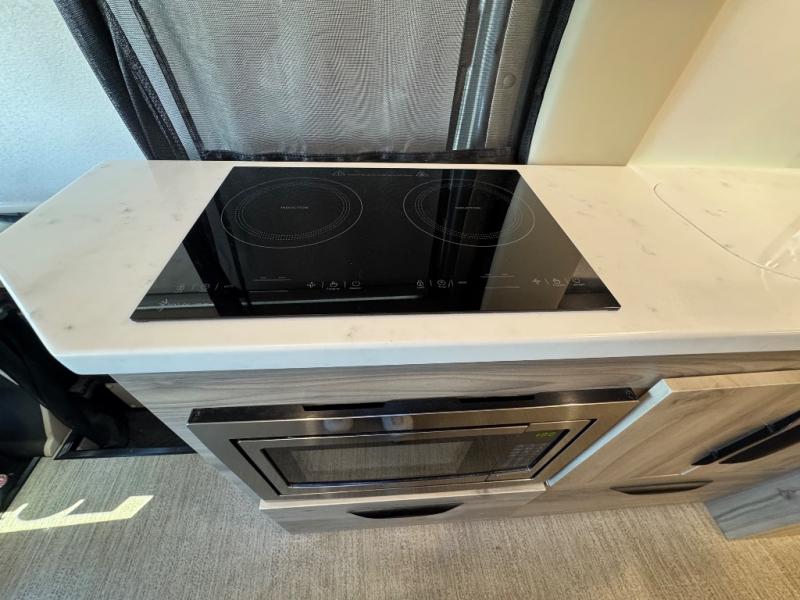This coach with a powered rear sofa will provide all you need for unforgettable trips on the road. Along with the rear sofa, you'll also find two dinette areas plus full kitchen amenities that include a convection microwave and a 6.2 cu. ft. electric refrigerator. There is also a removable induction cooktop for exterior cooking when the weather is nice. This model also includes a convenient wet bath so you can freshen up each day!