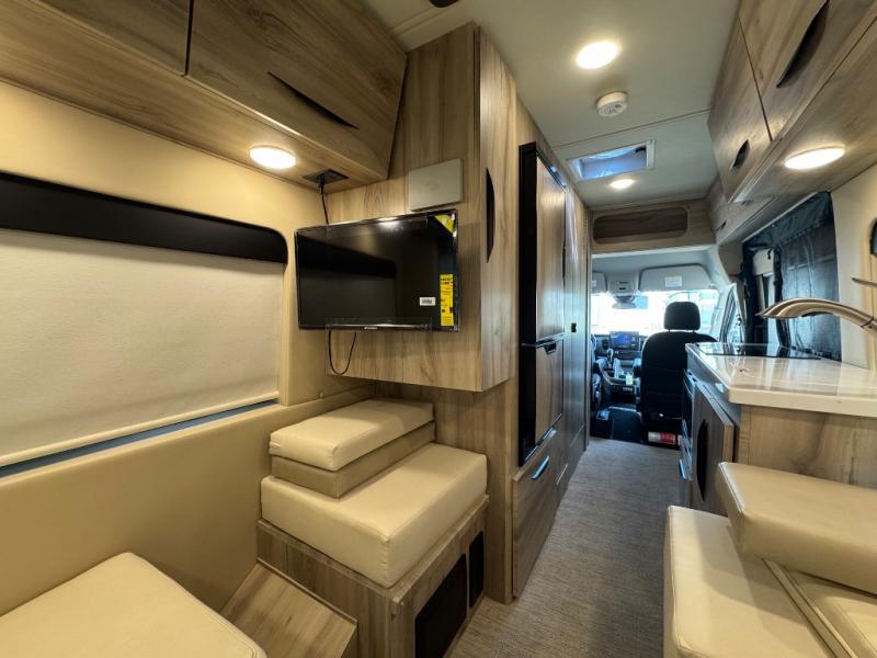 Luxury and functionality come standard in the Bayside Class B gas motorhomes by Chinook. The Ford Transit 3.5L Eco-Boost twin turbo gas engine can power your trips across the country or to your local state park. And you can go off the beaten path with the standard AWD when the adventure calls for it. Each model includes a thermal suppression system, a Dometic Penguin ll A/C, plus a Timberline 1.0 gas fired hydronic heat and on-demand hot water system for added convenience. The AGM house batteries provide 200 Amp hours and the 200 watt solar panel system includes a solar charger and display so you'll be ready to go off-grid. If you upgrade to the Bayside 360 Package, you'll enjoy a Truma Aventa A/C in place of the Dometic A/C, a Victron inverter in place of the Xantrex inverter, and more power features to keep you going.