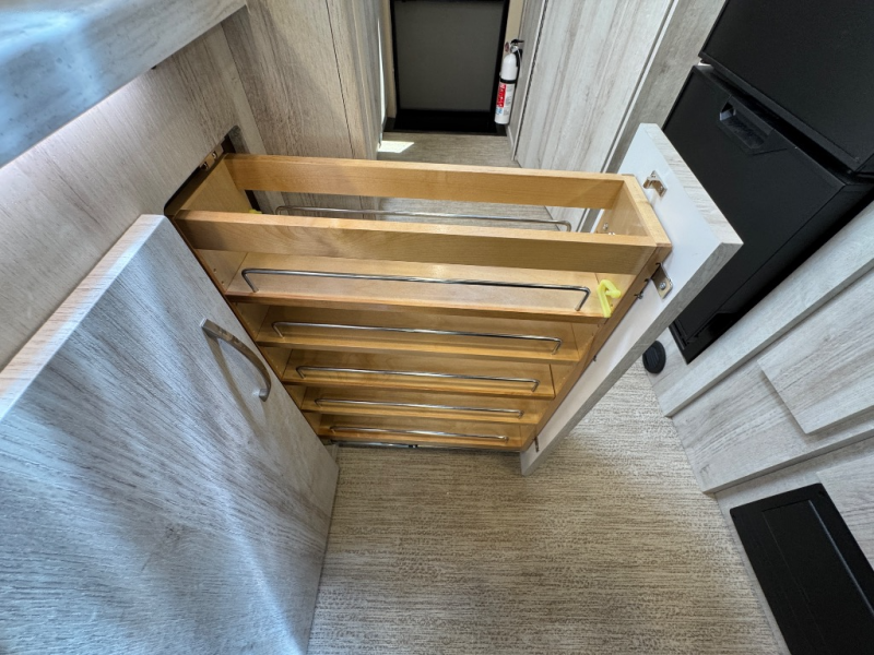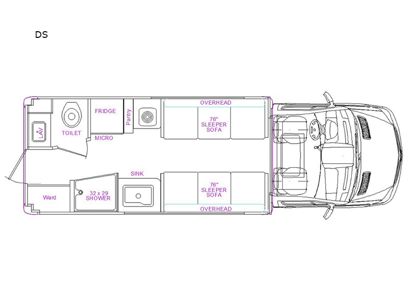 You will love the Maverick DS inside and out. You will sleep in roomy luxury on a 76" x 84" king bed. During the day, change the bed back into dual 76" sleeper sofas for a sweet living area. Prepare your best home cooked meals with the induction cooktop that can also be removed for outdoor cooking too, and you can store any leftovers inside the Norcold/Thetford 6.2 cu. ft. electric refrigerator. You'll also appreciate the separated rear bath with a 32" x 29" shower and wardrobe on one side and the private toilet and sink with medicine cabinet on the other side. There is plenty of overhead cabinets to store your indoor essentials and exterior storage for your outdoor essentials!