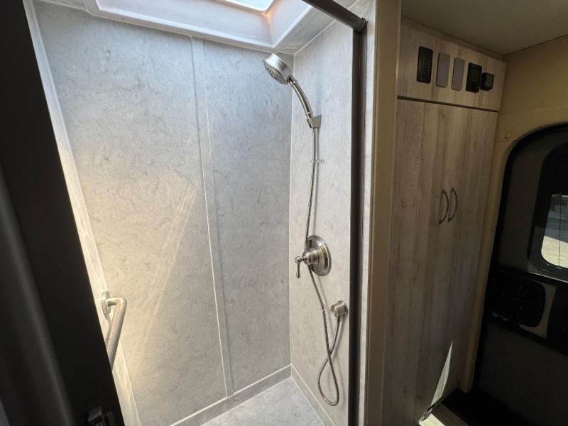 Built on the Ford Transit chassis with a 3.5L Eco Boost twin-turbo gas engine and AWD, the Chinook Maverick Class B+ gas motorhome is perfect for all your needs. Its compact size means it is easy to maneuver and park, but indoors you will find everything you need in a home away from home. Your power needs will be taken care of with an Expion 360 900 amp/hr. lithium battery system and 600 watt solar panel system with Victron solar charger, plus four solar panel plug-in ports in the exterior side-bay for an additional 480 watts of solar capability. A Timberline 1.0 diesel fired hydronic heat and on-demand water system keeps you warm and your water warm, plus there is a Truma Aventa 13,500 BTU air conditioner with built-in dehumidifier for those hot summer days. Some parts of their high-quality construction that you will appreciate include double pane automotive design windows with openable section and screens, a 2" x 4" welded steel subfloor assembly that is mounted on rubber isolator pads, a four point leveling system for even set up, and a one piece composite subfloor and roof. Come find your favorite one today!