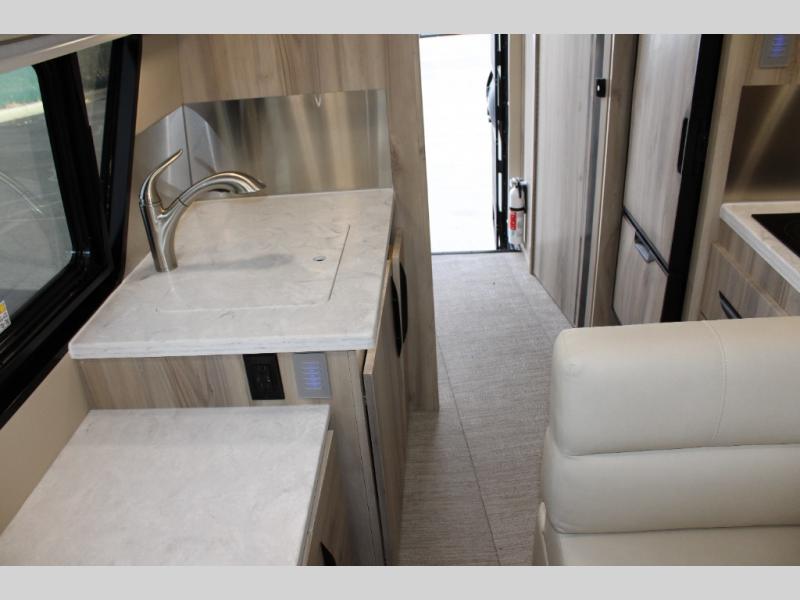 Each one of these Chinook RV Summit Class B+ diesel motorhomes are powered by a Mercedes-Benz Sprinter chassis with a 4 cylinder twin-turbo diesel engine and 9-speed transmission to power your adventures. You'll appreciate the Driver Convenience Package and safety features that include collision warning, a lane keeping system, and side-wind stabilization for a smooth drive. There is also a 4-point leveling system and a Smart Plug with a detachable 30 Amp power cord when you're ready to set up camp. Inside, the stylish interior includes soft touch, padded vinyl finishing, solid surface countertops, shower, and porcelain toilet, plus many more comforts!