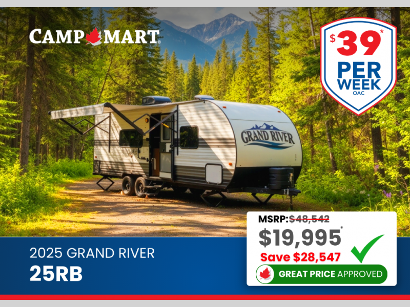 Travel light without giving up the good stuff. The 2025 Grand River Classic 25RB is a tow-friendly couples coach with a roomy rear bath, a relaxing lounge featuring a jack-knife sofa and booth dinette, and a walk-around queen bed up front. Dual axles provide added highway confidence, while camp-ready systems—tankless hot water, 20K BTU furnace, 13.5K BTU A/C, 30/36/36 gallon tanks, and a power awning—make every weekend smooth and low maintenance.