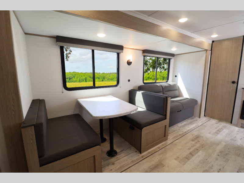 Full-Sized Super Slide — The oversized dinette and jack-knife sofa slide out to create an open-concept lounge.