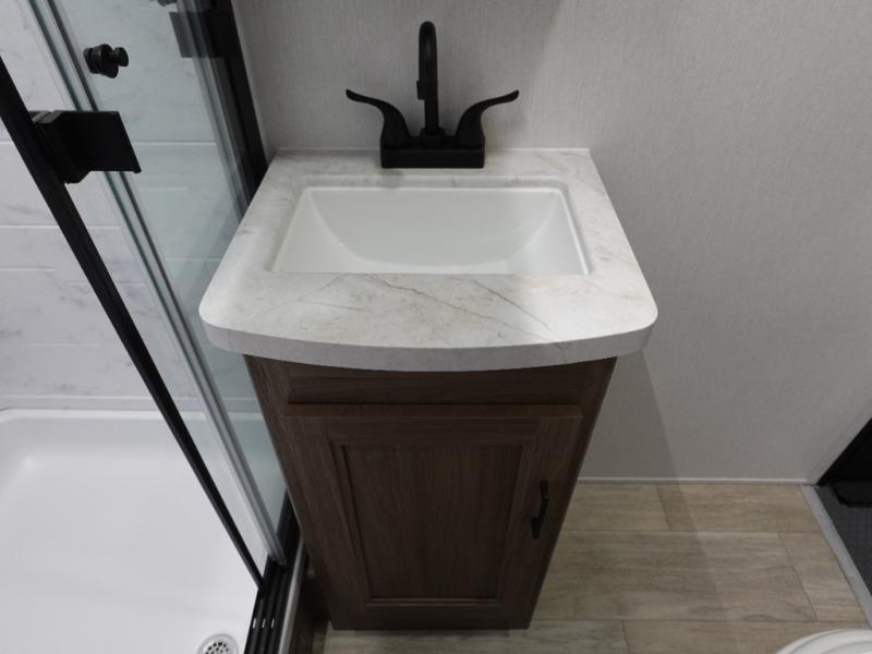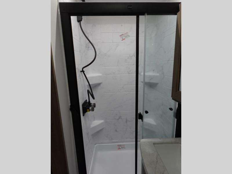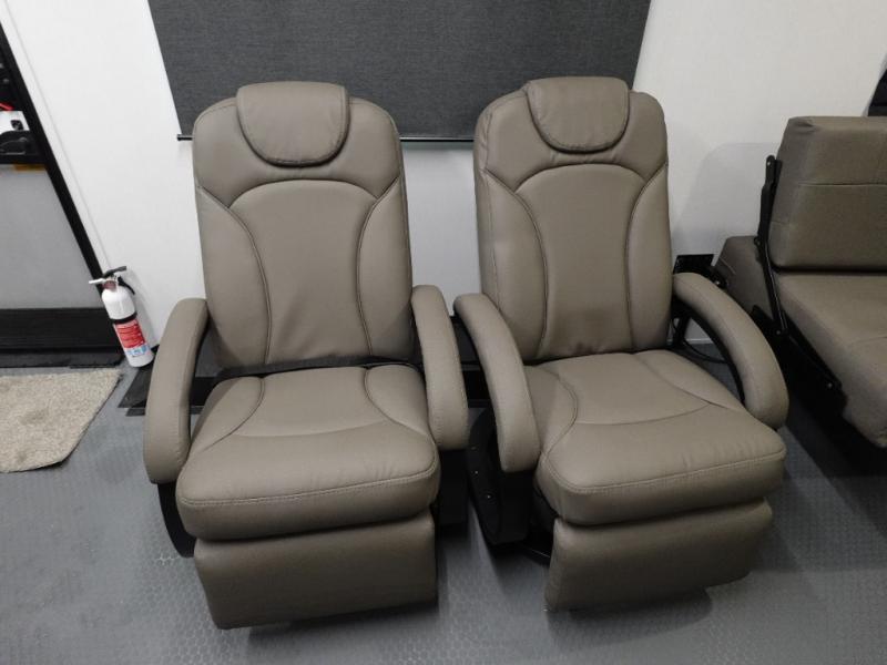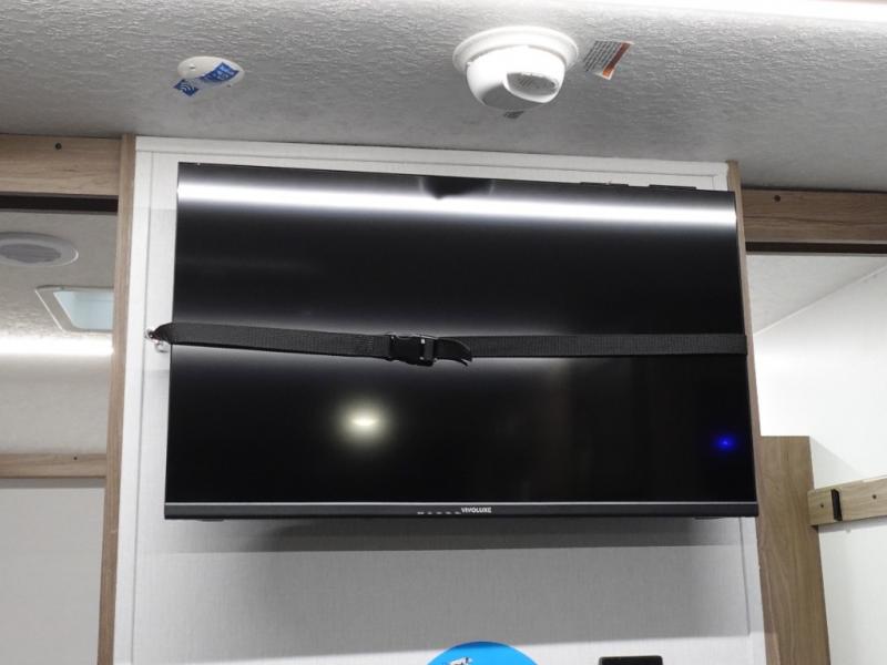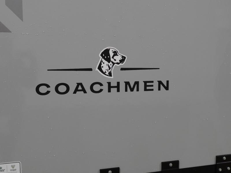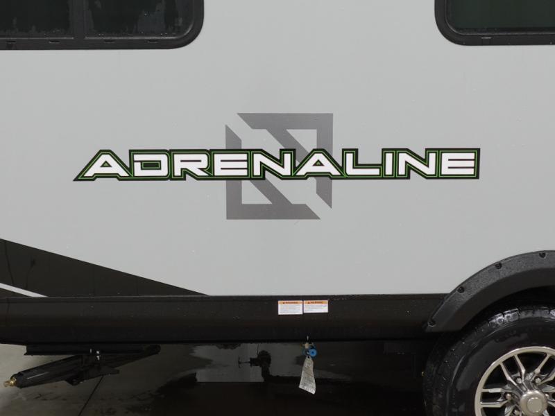 With any Adrenaline toy hauler travel trailer by Coachmen, the required Exterior Value package includes a one-piece Tufflex PVC roof membrane, a fiberglass front cap with rock guard to help against road debris, heavy duty Dexter axles with Nev-R-Adjust brakes and E-Z Lube, and aluminum wheels. Some exterior standards include a heated and enclosed underbelly, a patio ready ramp door with cables for an outdoor above ground space to enjoy, a power tongue jack for easy setup, and an outside spray port to clean off your toys. The interior standards include HD rubberized oil/gas/moisture resistant flooring in the garage area, hidden hinge cabinets and doors, a rear detachable screen, and USB charging ports in multiple locations for your electronics to mention a few.