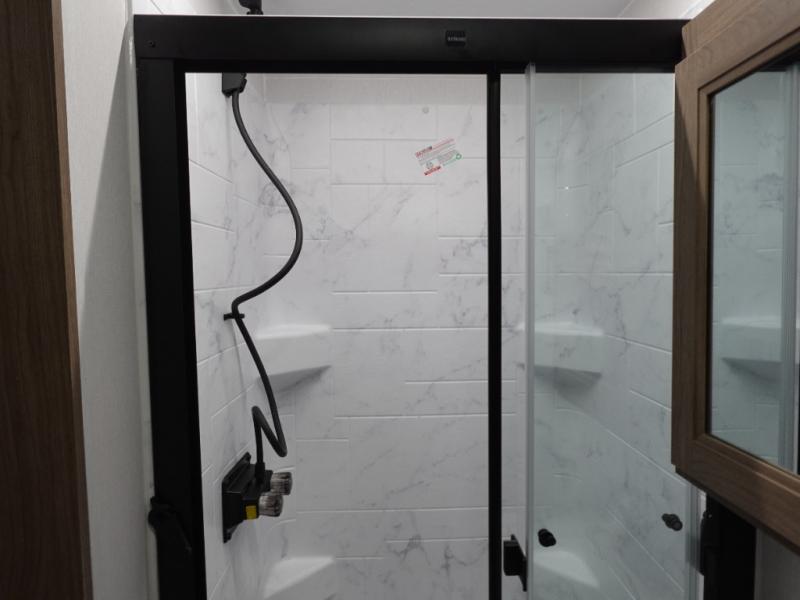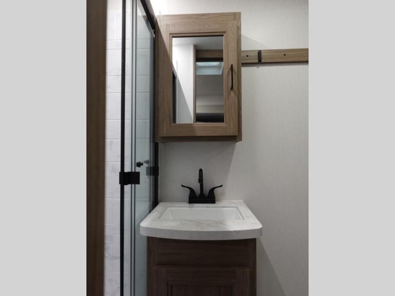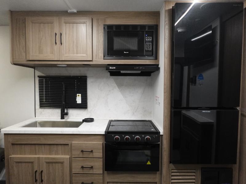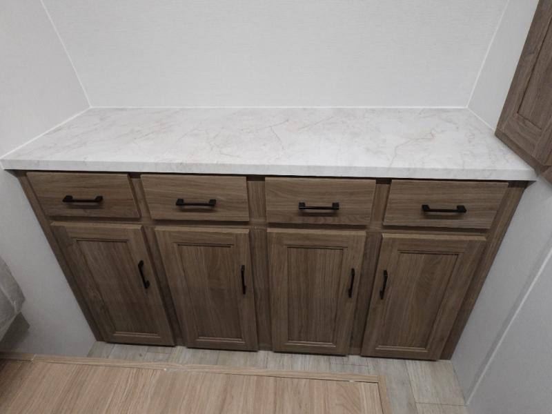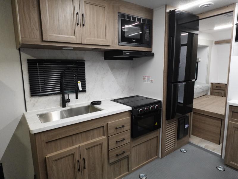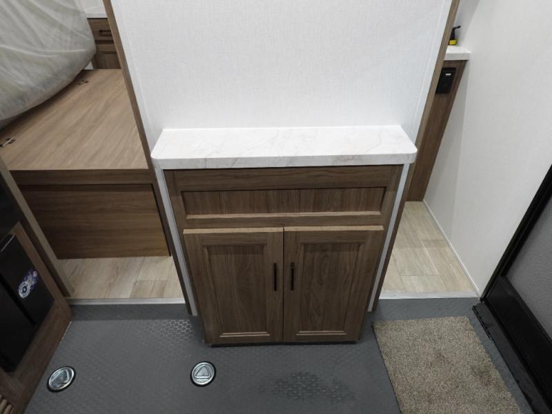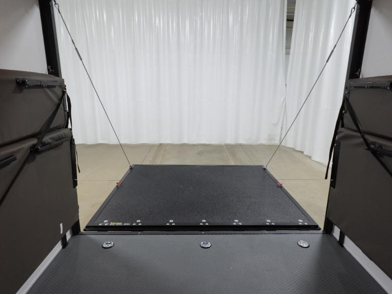 Load up your toys into 13' 8" of cargo space, your clothes in the dresser, your gear in the overhead cabinets, and your food in the refrigerator for a weekend or longer trail ride! The chef of the group can prepare breakfast on the three burner cooktop that includes an oven or use the microwave, and there is plenty of storage space in the overhead cabinets for kitchen necessities and snacks. The dual entry bath and a master bedroom are both along the front of the trailer giving you privacy and convenience. When it's finally time to call it a night, you will enjoy the queen bed slide and your guests can convert the two roll-over sofas for a great night's rest.