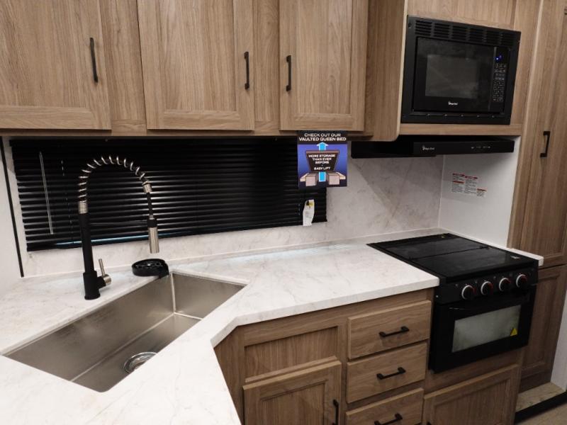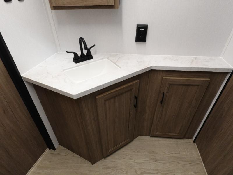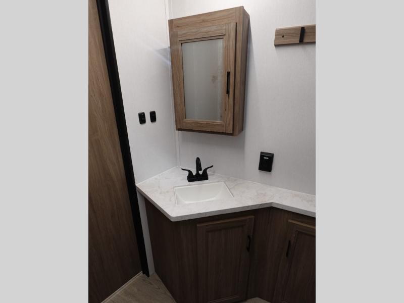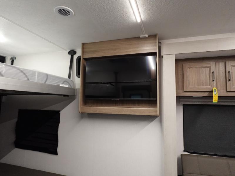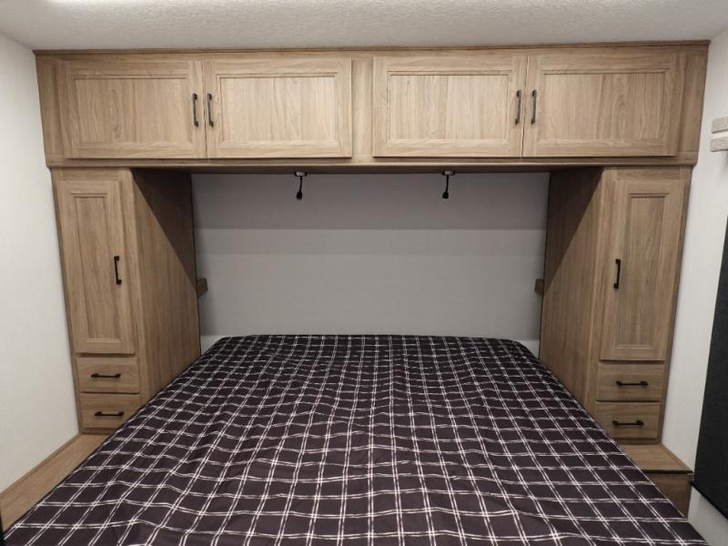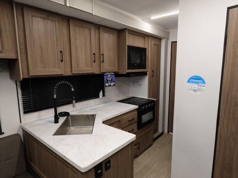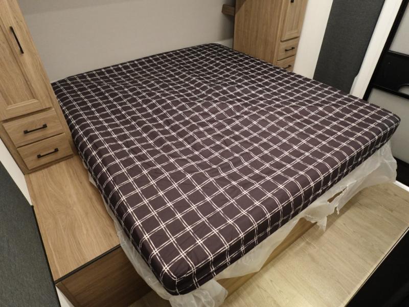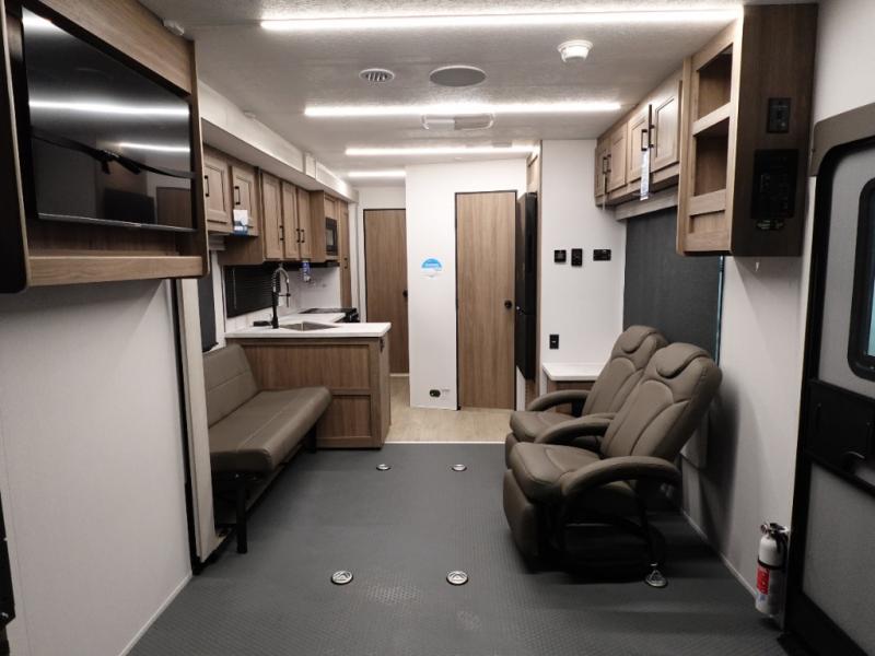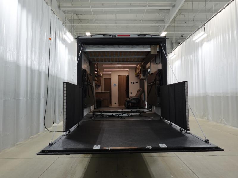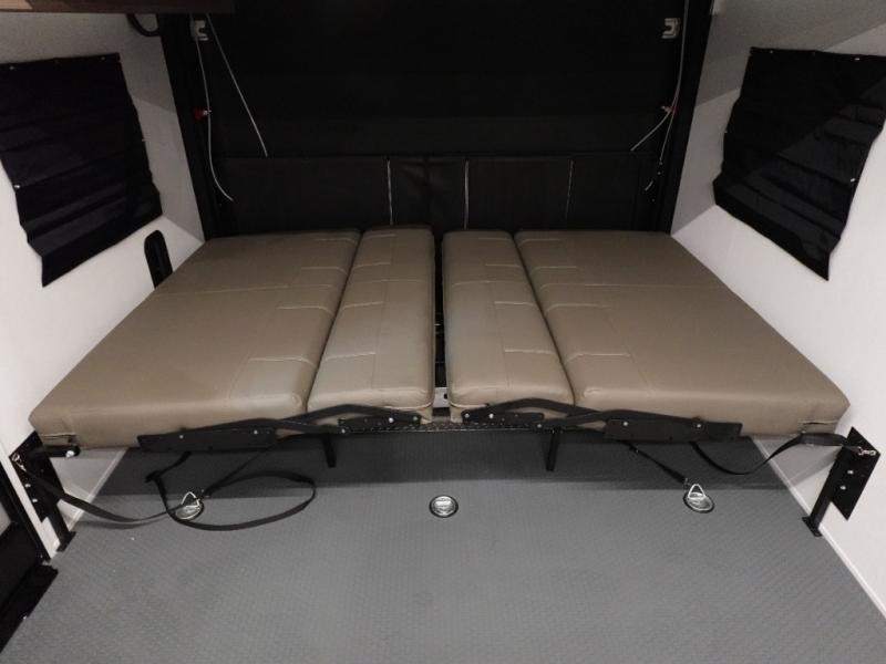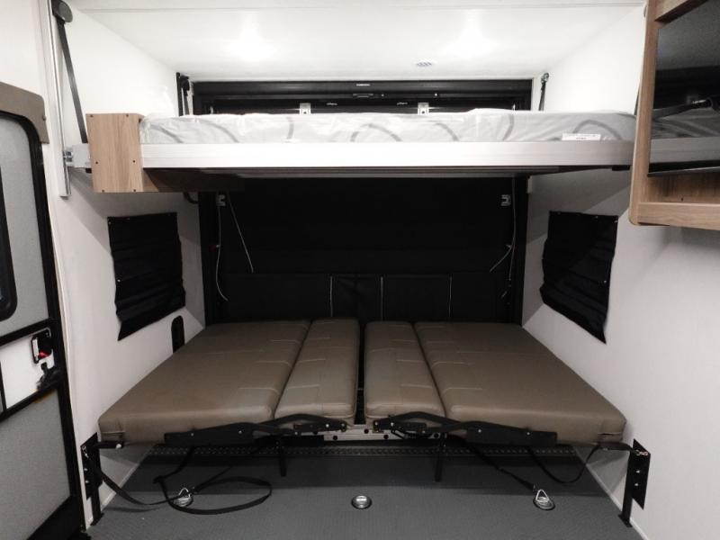 Looking for a spacious travel trailer that you can carry your toys to and from the off-road park and stay overnight in comfort? Well this might just fit the bill! You will appreciate the 15' 7" cargo space for all your toys, and the large slide out with a flip-up slide floor door will provide extra interior space. The chef of the family or group can prepare dinner on the three burner cooktop or use the microwave, and the double entry bath includes plenty of counter space that will come in handy when you're getting ready each day. This trailer also includes dual entry doors; one into the garage area and one into the front master bedroom with a king bed for your convenience. You will also find a rear pull down screen, pull-down roller night shades to be able to sleep in late, and a solar package to help you stay off-grid.
