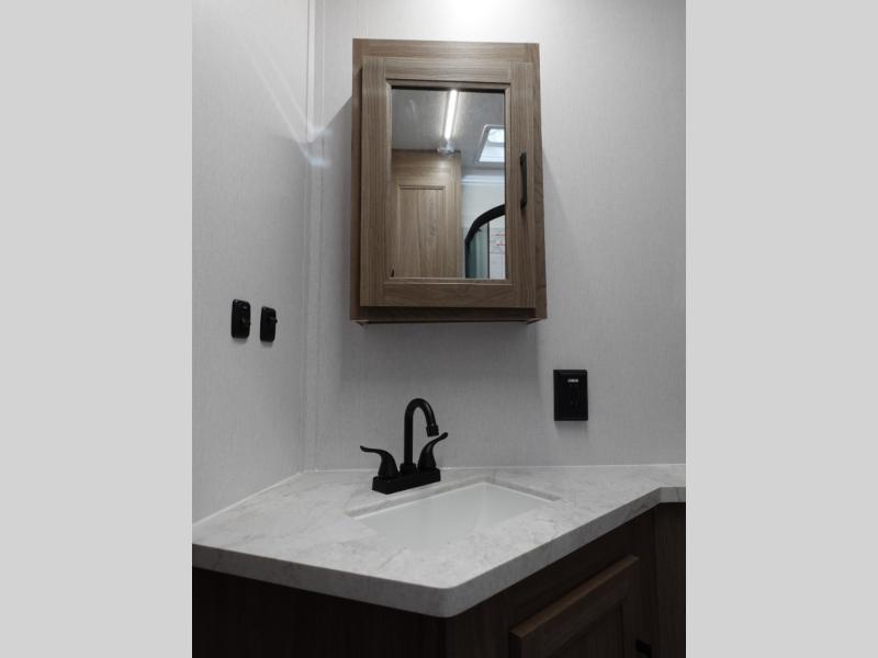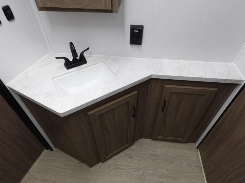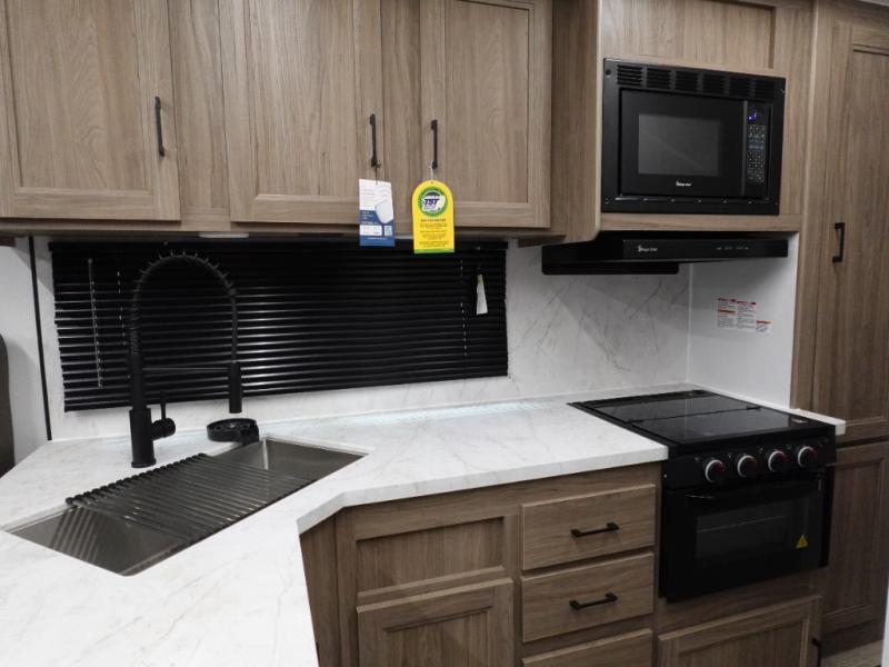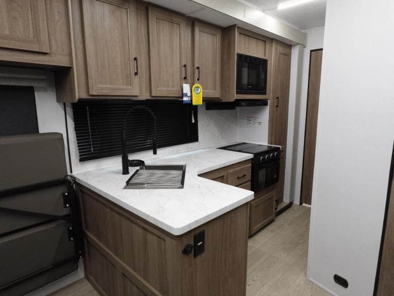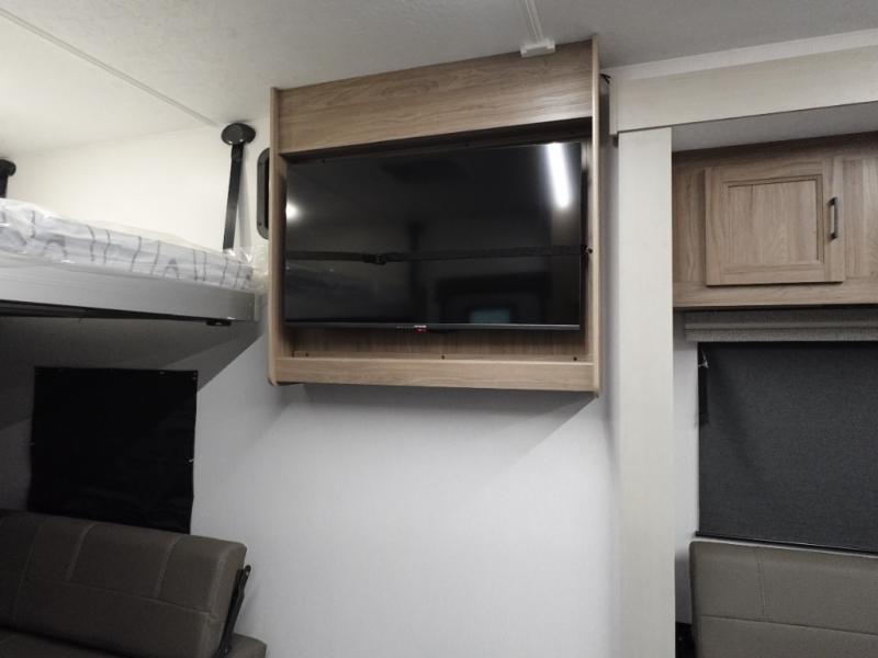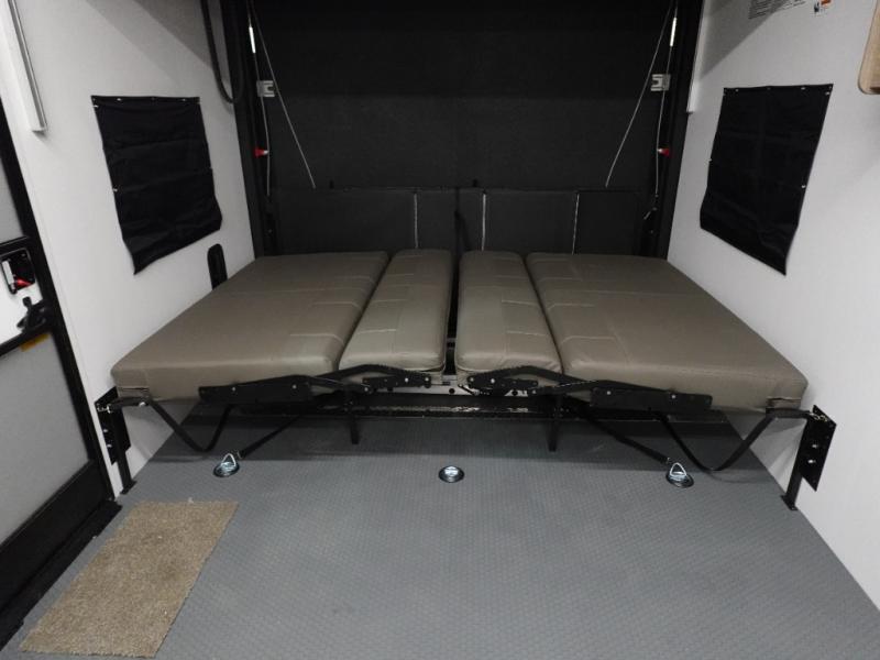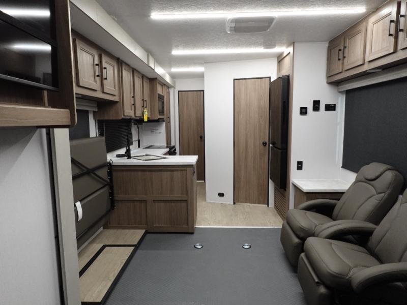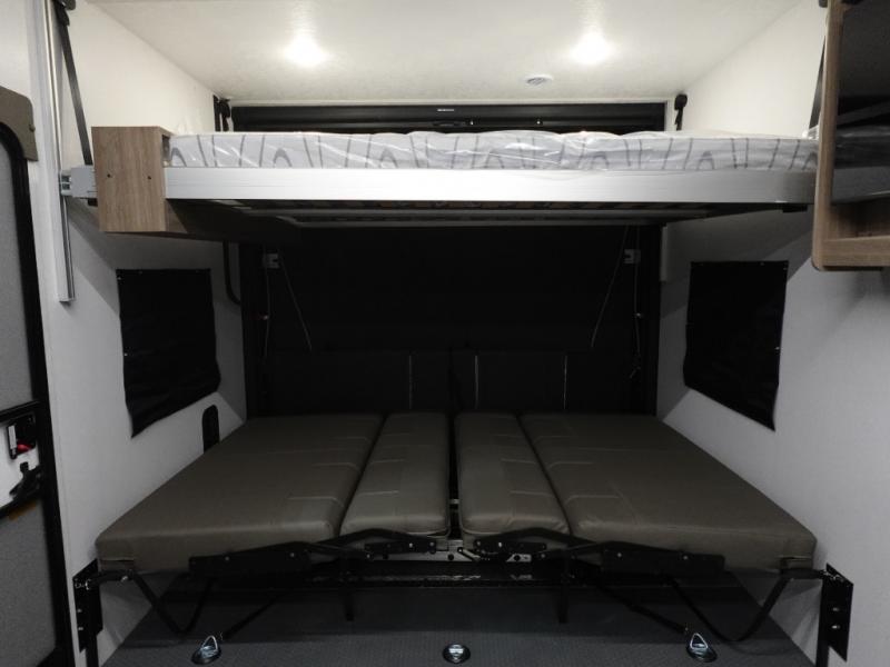Looking for a spacious travel trailer that you can carry your toys to and from the off-road park and stay overnight in comfort? Well this might just fit the bill! You will appreciate the 15' 7" cargo space for all your toys, and the large slide out with a flip-up slide floor door will provide extra interior space. The chef of the family or group can prepare dinner on the three burner cooktop or use the microwave, and the double entry bath includes plenty of counter space that will come in handy when you're getting ready each day. This trailer also includes dual entry doors; one into the garage area and one into the front master bedroom with a king bed for your convenience. You will also find a rear pull down screen, pull-down roller night shades to be able to sleep in late, and a solar package to help you stay off-grid.