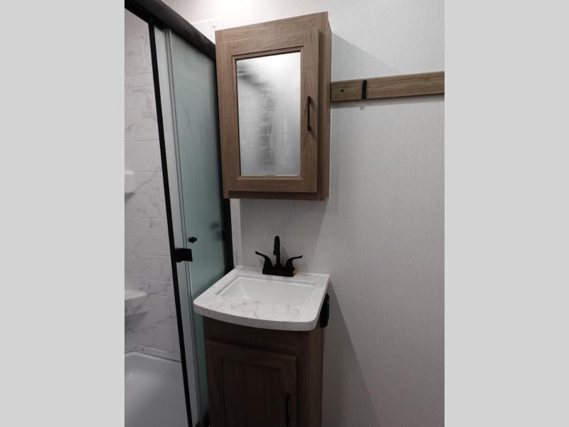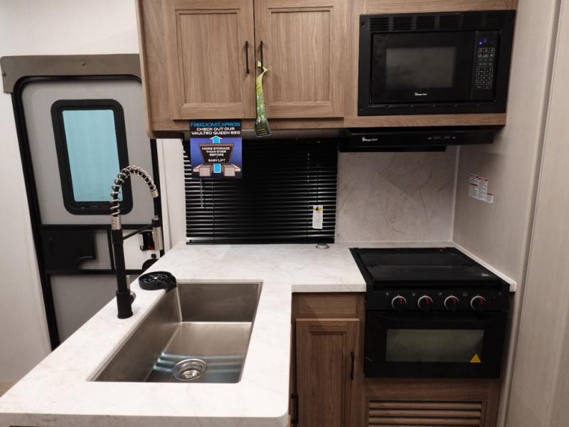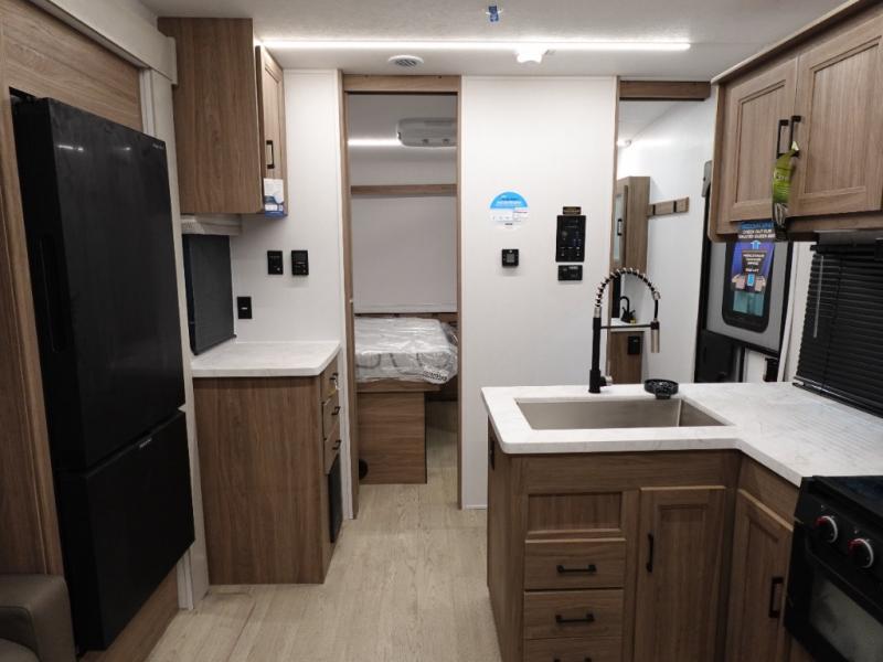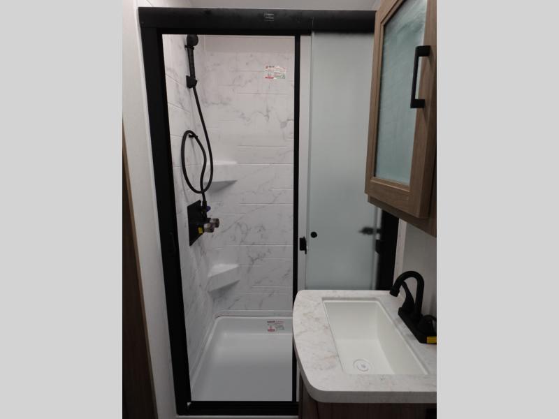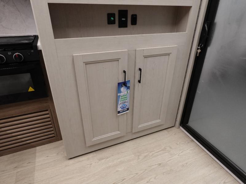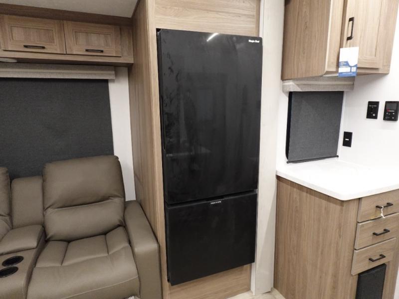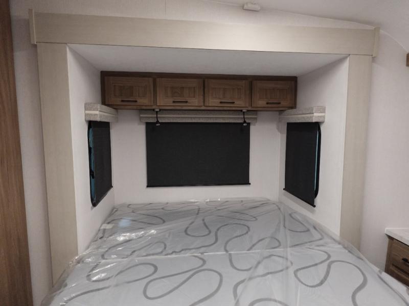 Looking for 13' of toy parking space, and sleeping space for six? You are going to love this model! You will appreciate the large cargo area for all your toys, and the extra sleeping space for family and friends with the roll over sofas converted and the overhead queen bed lift dropped down in the garage area. And the queen bed slide in the front master bedroom will be perfect for the owners. The chef of the family or group can prepare dinner on the three burner cooktop or use the microwave, and the double entry bath is conveniently located just inside the main side entry and includes a nice size shower, vanity with a sink and an overhead medicine cabinet. This toy hauler also includes dual entry/exit doors with the second one into the garage area. You will also find a rear pull down screen in the garage, pull-down roller night shades to be able to sleep in late, and a solar package to help you stay off-grid.