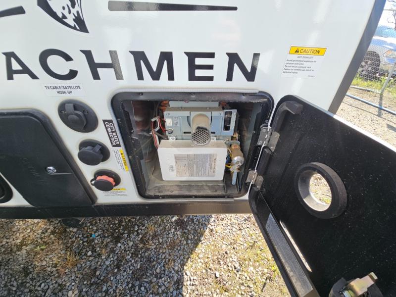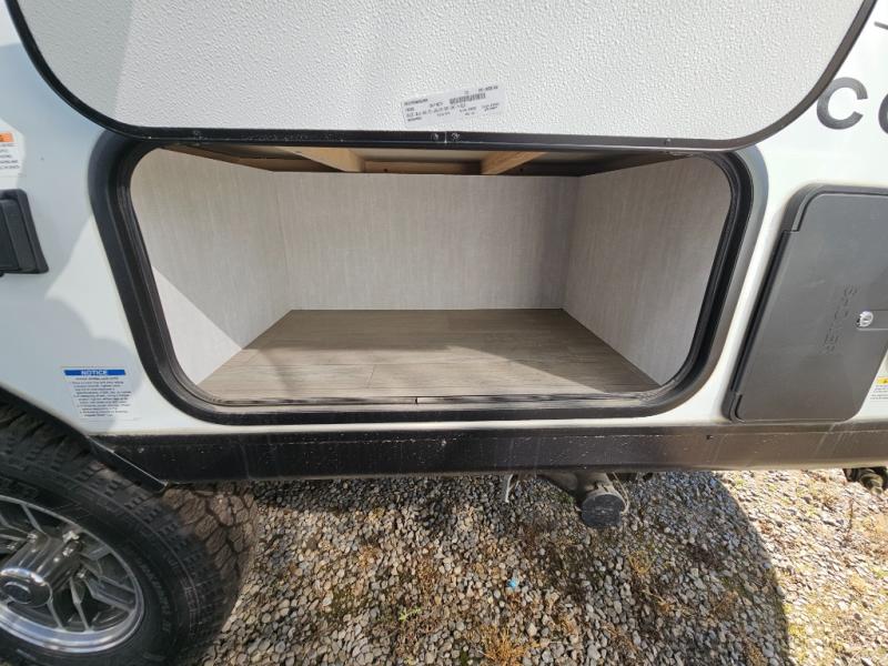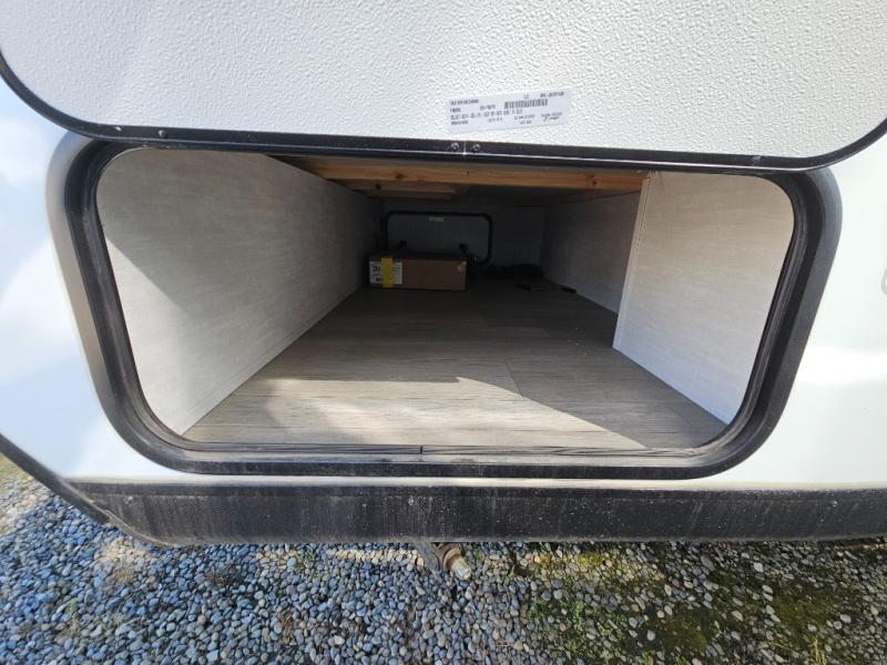 There's a comfortable place for everyone to sleep in this travel trailer with a front 54" x 80" bed and set of 30" x 70" bunk beds! The sofa can even transform into an extra sleeping space for a guest! Enjoy a meal prepared with the two burner cooktop, microwave, and 8 cu. ft. 12V refrigerator, then head outdoors to sit under the 12' power awning. The rear corner bathroom has a tub/shower for you to start your mornings feeling clean and fresh, plus a medicine cabinet to keep your toiletries close. You will have plenty of room to store your outdoor gear between the front exterior pass-through storage area and the rear exterior storage area!