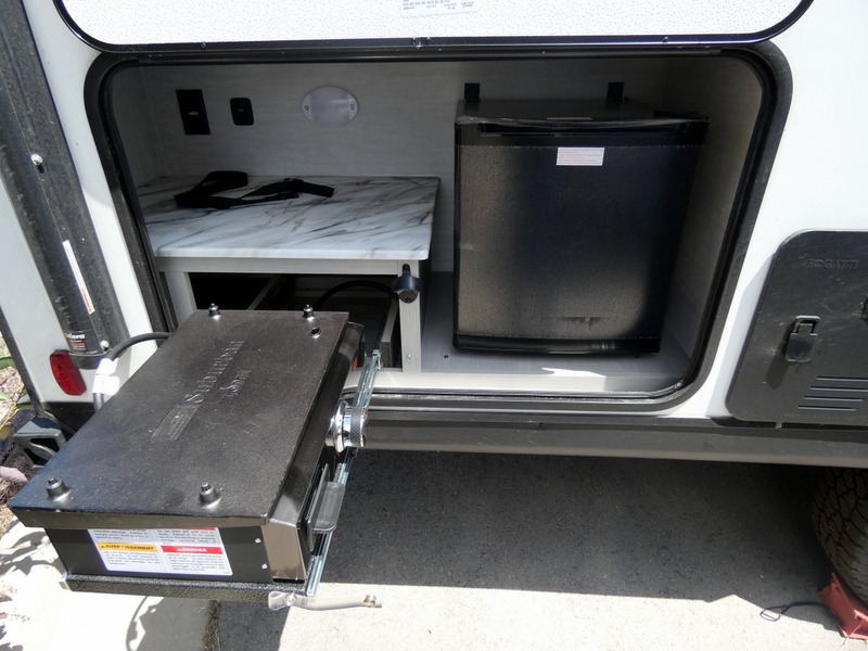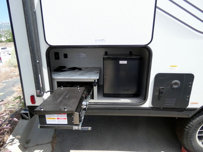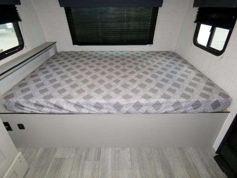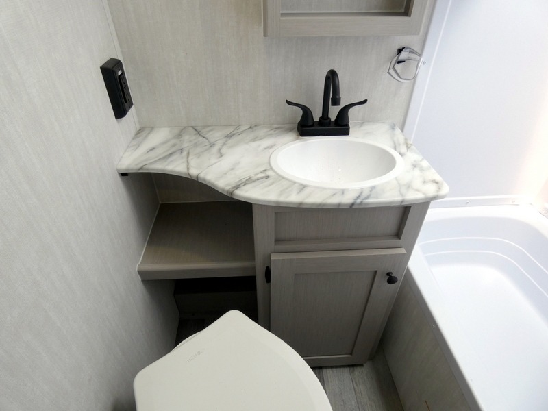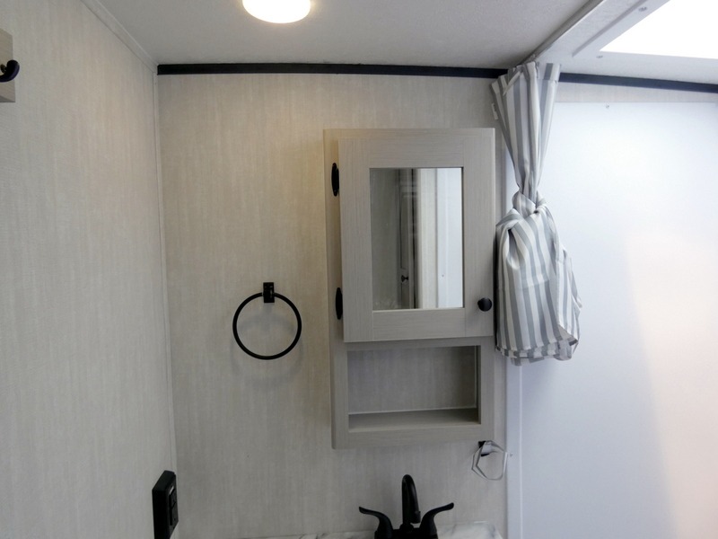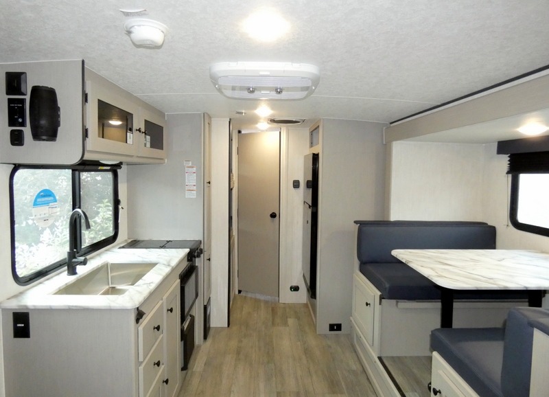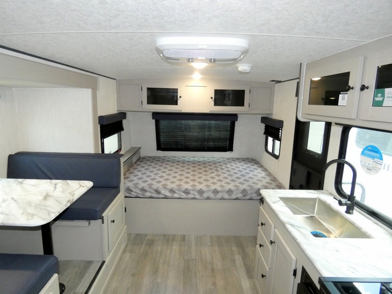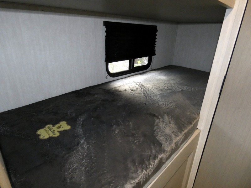 You will have more interior space with a booth dinette slide in this travel trailer! The chef will love cooking indoors with the two burner cooktop, microwave, and 8 cu. ft. 12V refrigerator, as well as outdoors with the exterior camp kitchen. Start each morning feeling clean and refreshed after sleeping on the front queen bed with a headboard and showering in the tub/shower inside the rear corner bathroom, plus the bathroom has a wardrobe to keep your towels close. The kids will love sleeping on the rear corner set of 30" x 74" bunk beds too!