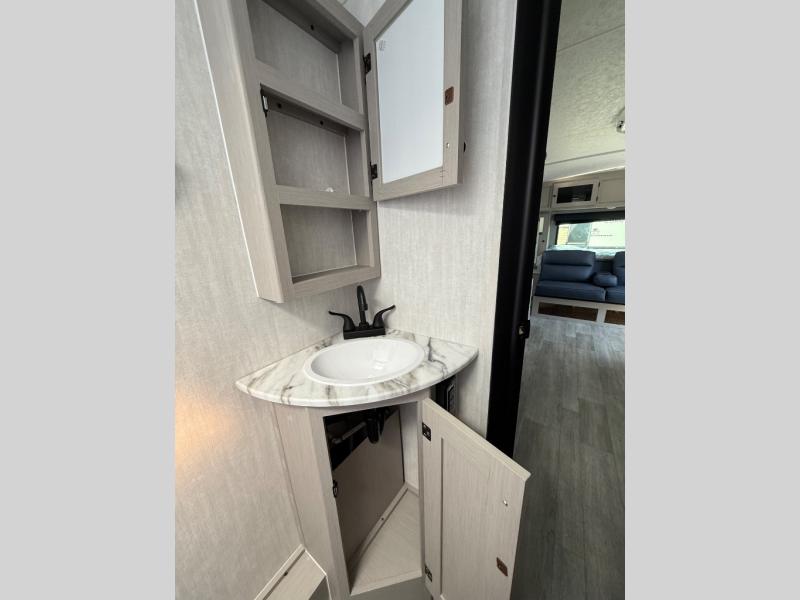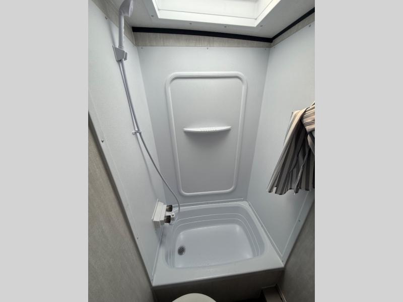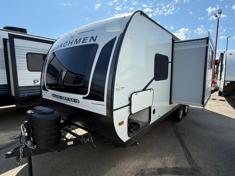 You will find comfort, convenience, and a sturdy construction with each of these Coachmen RV Apex Nano travel trailers! They are held together with an aluma-cage construction, an I-beam chassis, plus vacuum-bonded laminated dual Azdel fiberglass walls for double the protection against the elements. The 200-watt solar panel with a 30 amp control charger is included within the Off-Grid Package, along with two 20 lb. LP tanks, a high velocity power roof vent, plus 12V outlets to keep you powered up. More exterior feature include a hot/cold shower, four stabilizer jacks, a power awning with LED lighting, and magnetic baggage door catches to easily pack and unload your gear. You will love the interior of your Apex Nano with Congoleum residential flooring, one-piece seamless edge countertops, matte black hardware in the galley, and a hand-crafted wood medicine cabinet in the bath.