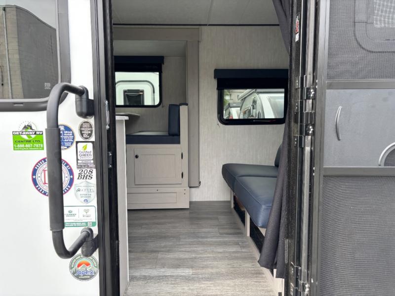 You will find comfort, convenience, and a sturdy construction with each of these Coachmen RV Apex Nano travel trailers! They are held together with an aluma-cage construction, an I-beam chassis, plus vacuum-bonded laminated dual Azdel fiberglass walls for double the protection against the elements. The 200-watt solar panel with a 30 amp control charger is included within the Off-Grid Package, along with two 20 lb. LP tanks, a high velocity power roof vent, plus 12V outlets to keep you powered up. More exterior feature include a hot/cold shower, four stabilizer jacks, a power awning with LED lighting, and magnetic baggage door catches to easily pack and unload your gear. You will love the interior of your Apex Nano with Congoleum residential flooring, one-piece seamless edge countertops, matte black hardware in the galley, and a hand-crafted wood medicine cabinet in the bath.