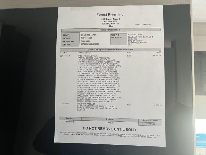 ALL 25's @ INVOICE!Coachmen RV Apex Nano travel trailer 213RDS highlights: