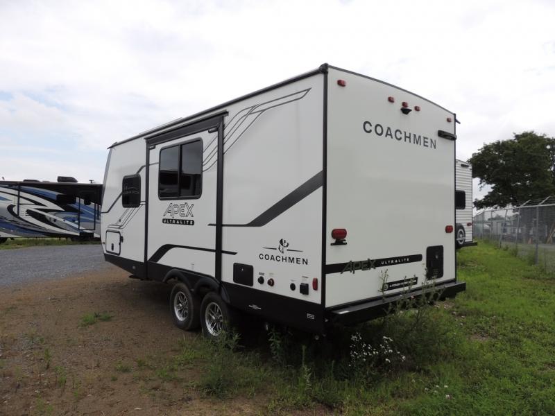 Lightweight living and camping is found with the Apex Ultra-Lite travel trailers by Coachmen. These eco-friendly units are made to last thanks to the Azdel composite sidewalls, the laminated aluminum floor, and the vacuum-bonded laminated crowned roof. Easy lube axles make towing easier than ever, plus there is a friction hinge entrance door, a 200-watt solar panel with a 30 Amp control charger, and slam latch baggage door catches for easy unloading. Some of the interior comforts you'll fall in love with are the one-piece seamless edge countertops, the hard valances with night shades, the matte black hardware, and the Casino Bisque cabinetry. The Apex Ultra-Lite trailers also include a USB charge station, plus a digital TV antenna with cable hook-ups and Wi-Fi capability for the option to stay connected as you camp!