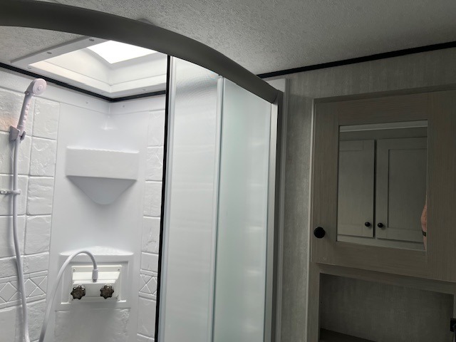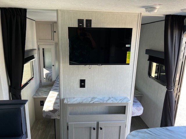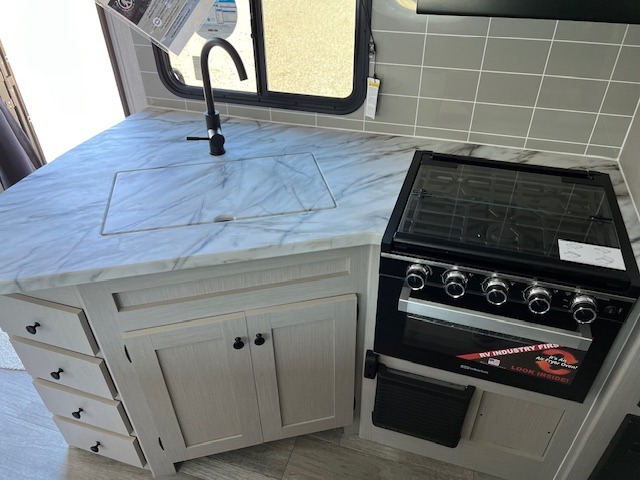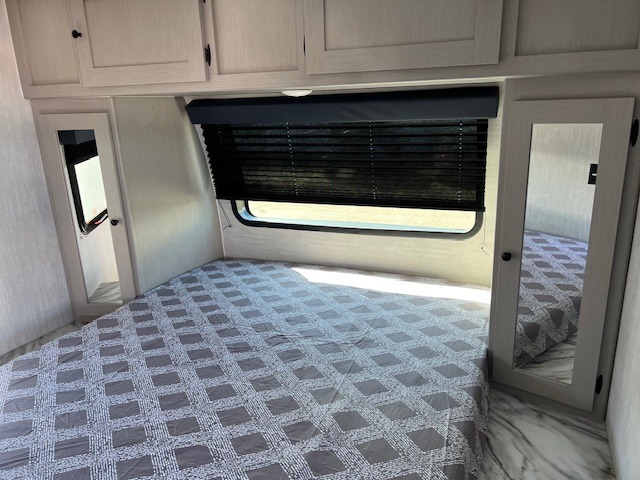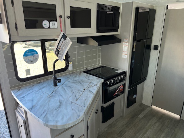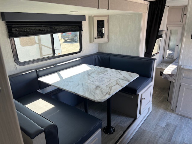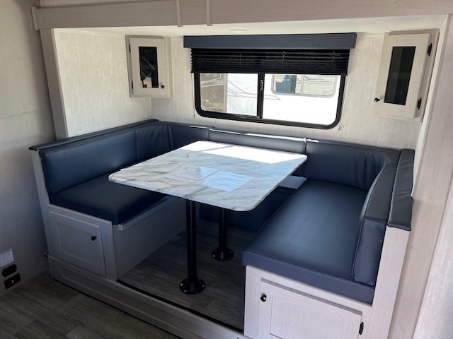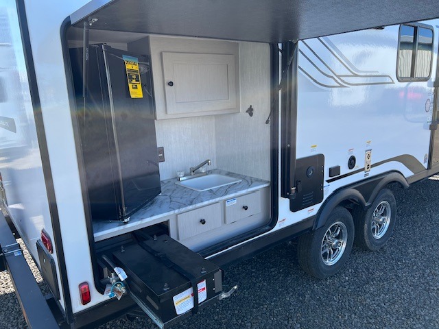 Easy to tow so you can get up and go! The U-shaped dinette slide will not only be a favorite spot to dine and play games, but will also double as additional sleeping space. There is a full interior kitchen, plus an outdoor kitchen that is perfect for breakfast outdoors. When you're ready to come in for the night, head to the spacious full rear bath to clean up, and the front bedroom will make this unit feel more like home with its queen bed and dual wardrobes!