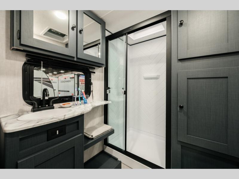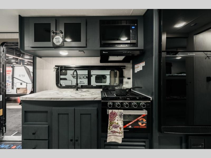 Lightweight living and camping is found with the Apex Ultra-Lite travel trailers by Coachmen. These eco-friendly units are made to last thanks to the Azdel composite sidewalls, the laminated aluminum floor, and the vacuum-bonded laminated crowned roof. Easy lube axles make towing easier than ever, plus there is a friction hinge entrance door, a 200-watt solar panel with a 30 Amp control charger, and slam latch baggage door catches for easy unloading. Some of the interior comforts you'll fall in love with are the one-piece seamless edge countertops, the hard valances with night shades, the matte black hardware, and the Casino Bisque cabinetry. The Apex Ultra-Lite trailers also include a USB charge station, plus a digital TV antenna with cable hook-ups and Wi-Fi capability for the option to stay connected as you camp!