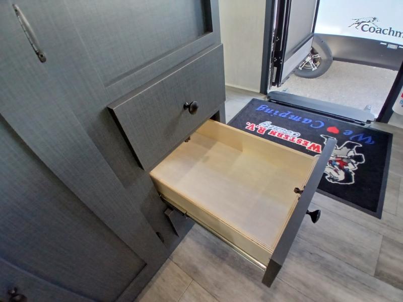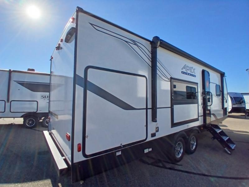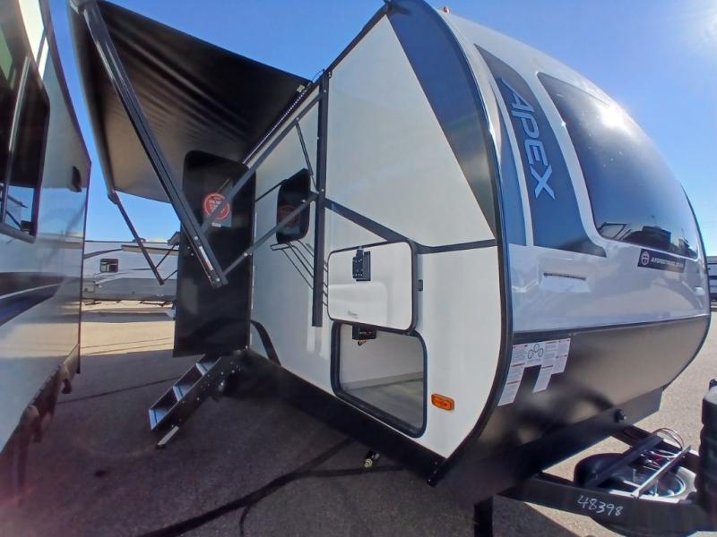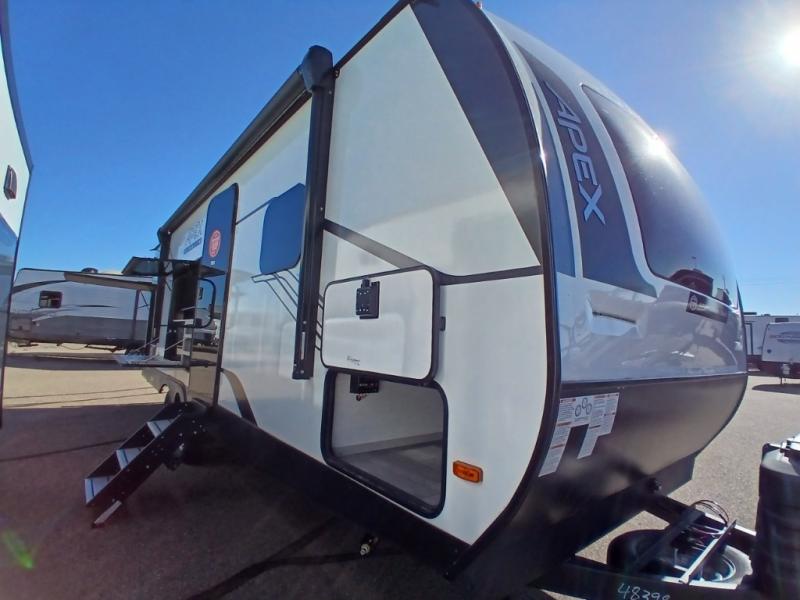 Lightweight living and camping is found with the Apex Ultra-Lite travel trailers by Coachmen. These eco-friendly units are made to last thanks to the Azdel composite sidewalls, the laminated aluminum floor, and the vacuum-bonded laminated crowned roof. Easy lube axles make towing easier than ever, plus there is a friction hinge entrance door, a 200-watt solar panel with a 30 Amp control charger, and slam latch baggage door catches for easy unloading. Some of the interior comforts you'll fall in love with are the one-piece seamless edge countertops, the hard valances with night shades, the matte black hardware, and the Casino Bisque cabinetry. The Apex Ultra-Lite trailers also include a USB charge station, plus a digital TV antenna with cable hook-ups and Wi-Fi capability for the option to stay connected as you camp!