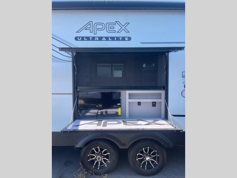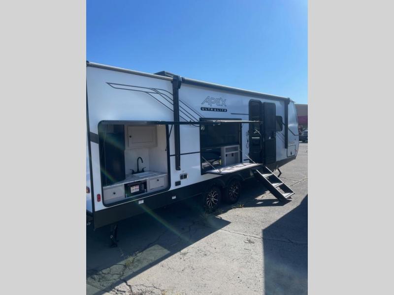 Lightweight living and camping is found with the Apex Ultra-Lite travel trailers by Coachmen. These eco-friendly units are made to last thanks to the Azdel composite sidewalls, the laminated aluminum floor, and the vacuum-bonded laminated crowned roof. Easy lube axles make towing easier than ever, plus there is a friction hinge entrance door, a 200-watt solar panel with a 30 Amp control charger, and slam latch baggage door catches for easy unloading. Some of the interior comforts you'll fall in love with are the one-piece seamless edge countertops, the hard valances with night shades, the matte black hardware, and the Casino Bisque cabinetry. The Apex Ultra-Lite trailers also include a USB charge station, plus a digital TV antenna with cable hook-ups and Wi-Fi capability for the option to stay connected as you camp!